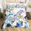 Dragonfly Duvet Cover Queen Botanical Floral Comforter Cover Vintage Style Sunflower Bedding Set Natural Pastoral Spring Decor