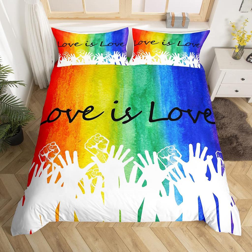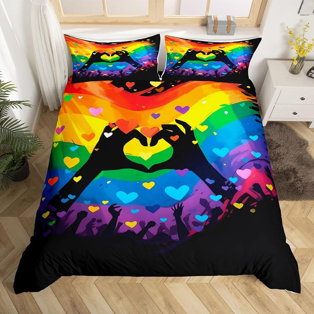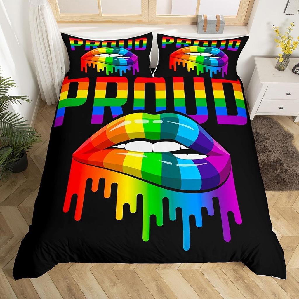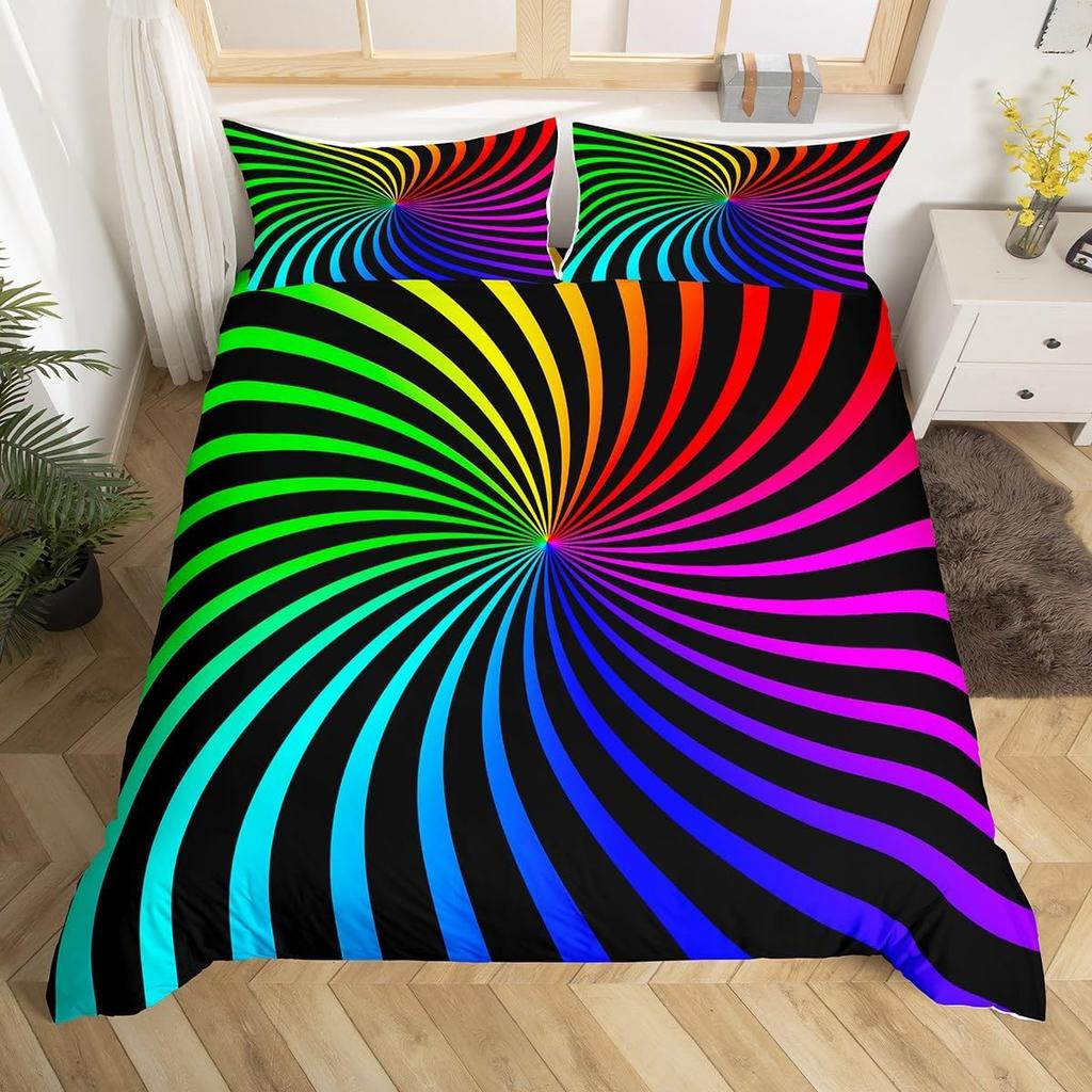 Красочный вихревой постельный комплект, Радужные полосы Пододеяльник Твин Кинг Сайз Тема гордости Покрывало Абстрактное искусство