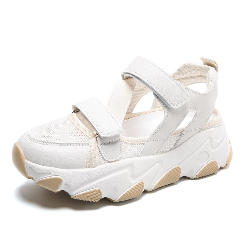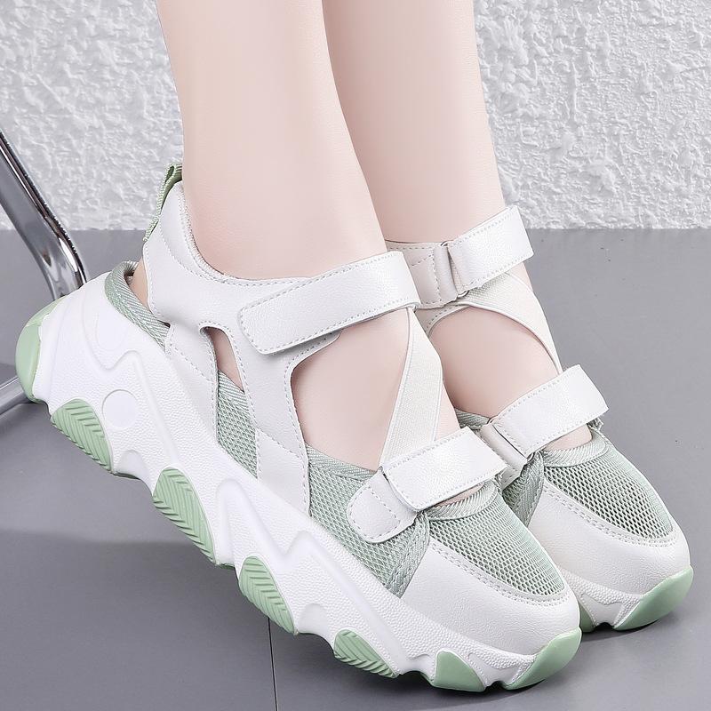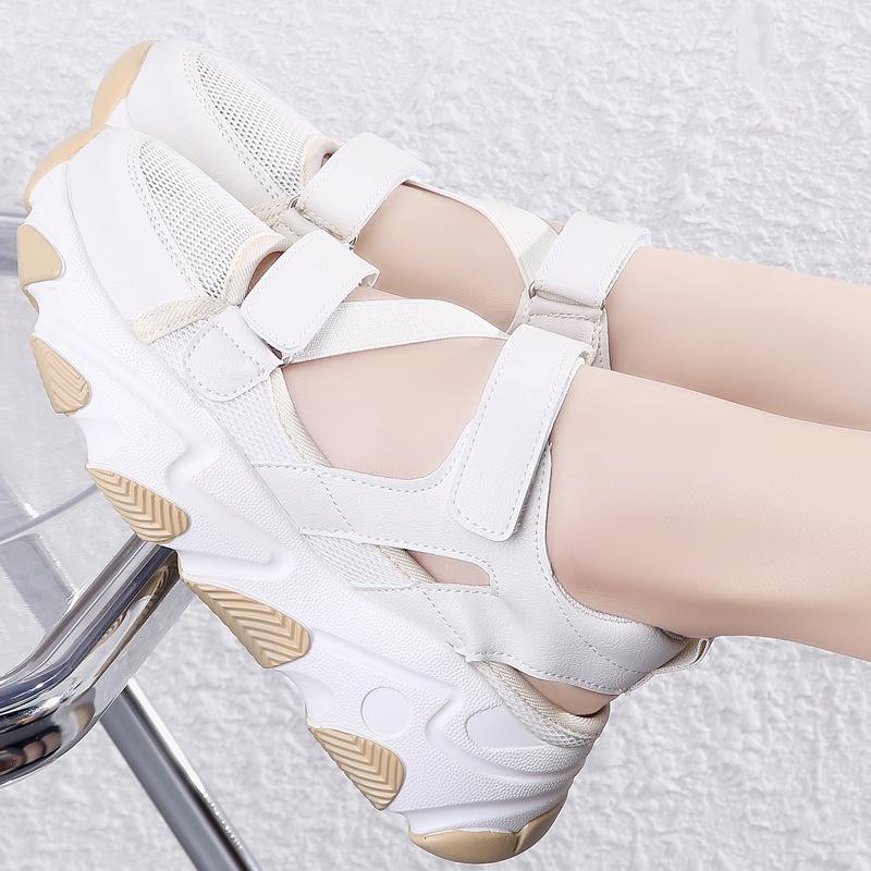 Мода Новые женские кроссовки сандалии на полой платформе летние дышащие спортивные теннисные сандалии сетчатая парусиновая мягкая обувь на плоской подошве высокие каблуки 2024