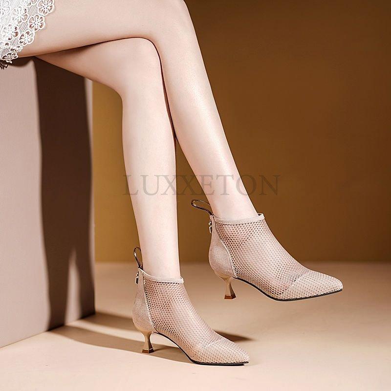 Мода сексуальные черные сетчатые женские сапоги на высоком каблуке модные остроносые тонкие каблуки летние туфли модные весенние короткие сапоги обувь — купить товар онлайн с бесплатной доставкой по всему миру!
