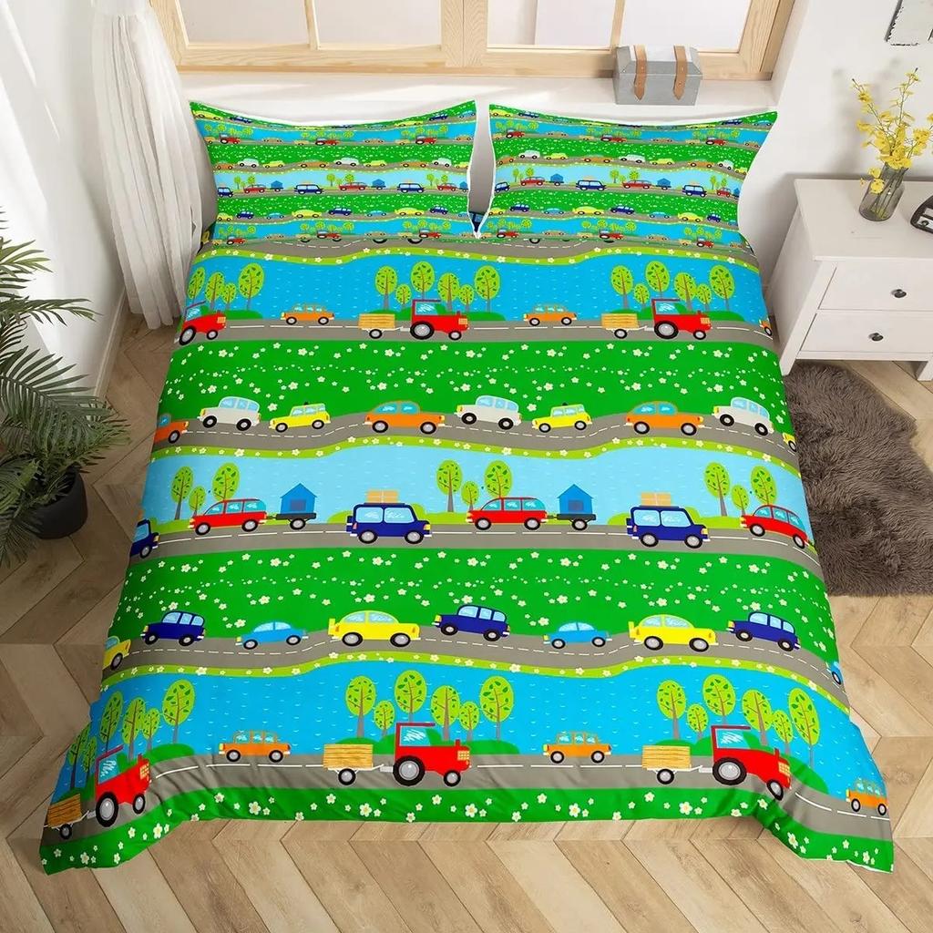 Детский мультяшный комплект пододеяльника с принтом машинок, комплект постельного белья с изображением города, улицы, дороги, из микрофибры, чехол для одеяла размера твин, квин