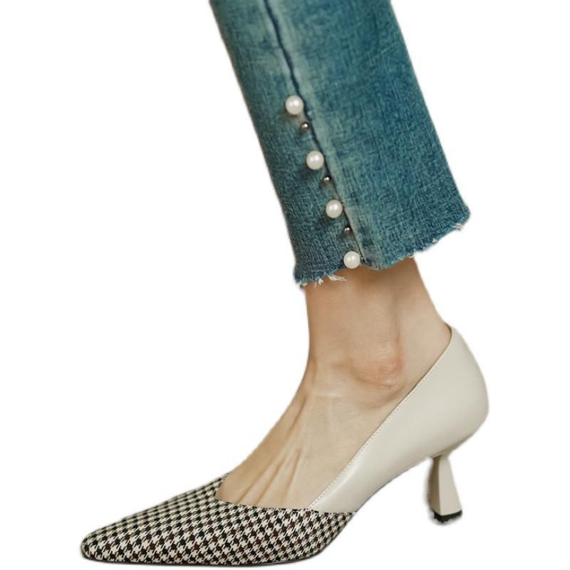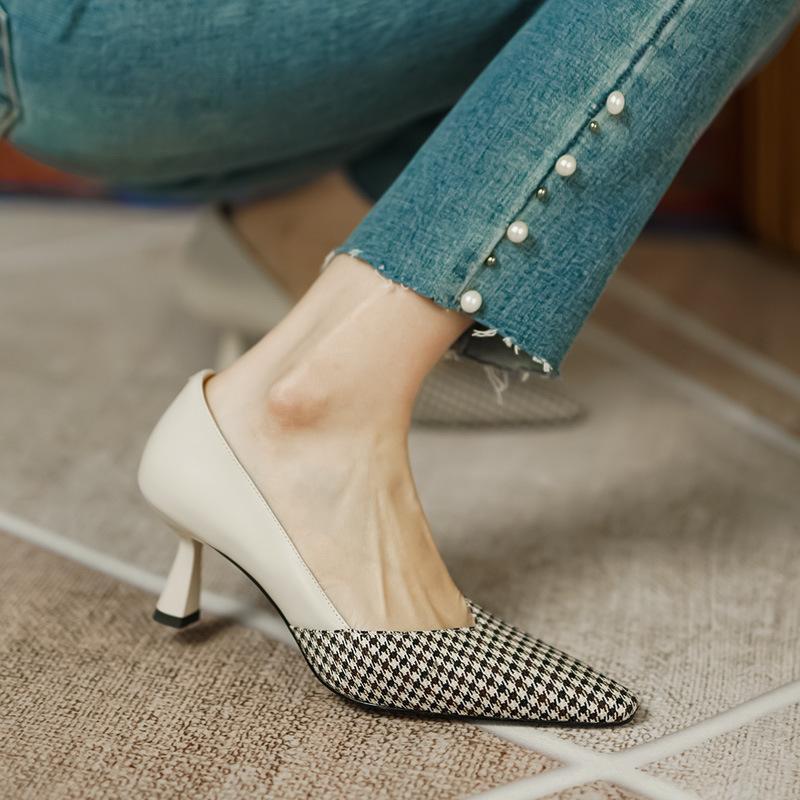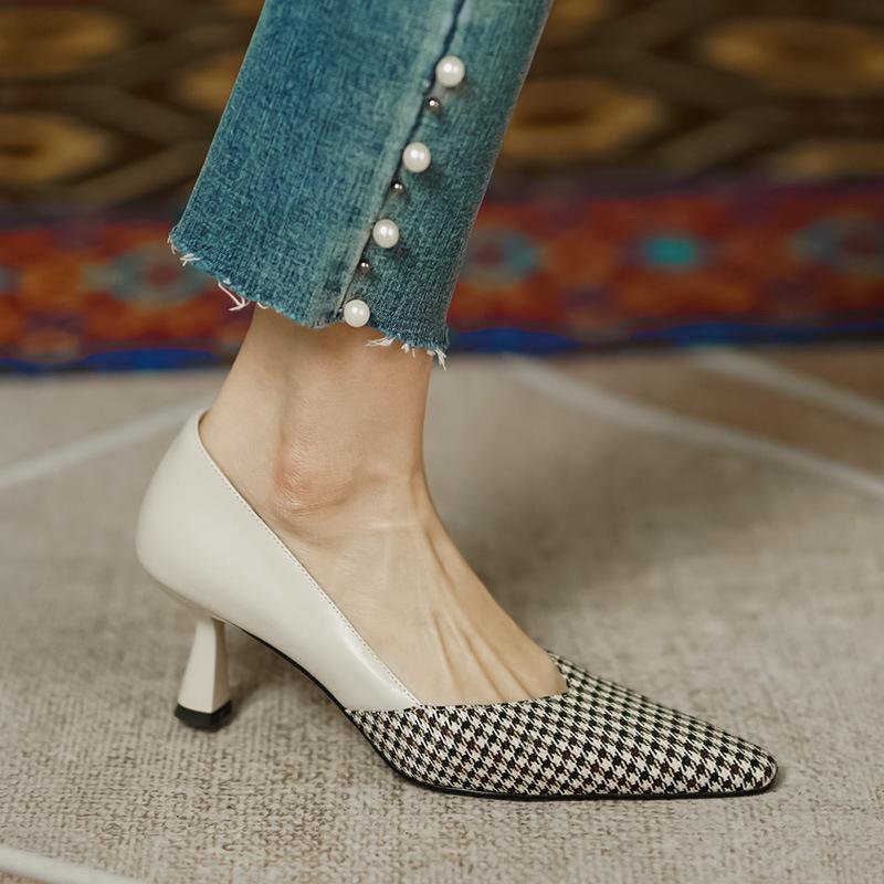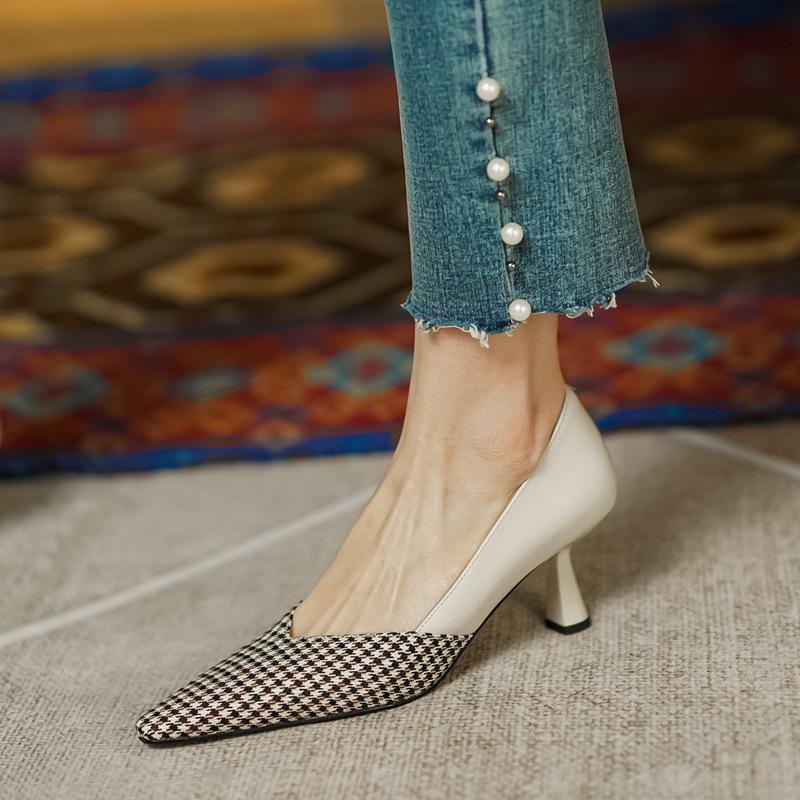 Модные женские туфли-лодочки с острым носком в клетку на шпильке Элегантные женские туфли на каблуках Дизайнерская обувь Женская обувь для вечеринок Женские роскошные туфли-лодочки 2024