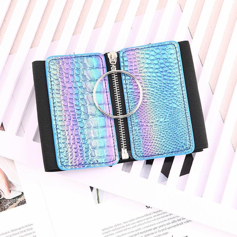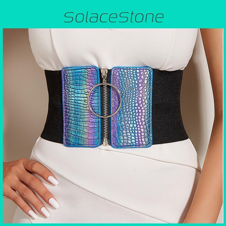 Женский широкий эластичный пояс с дизайном кольца-молнии Стильный аксессуар для повседневной носки