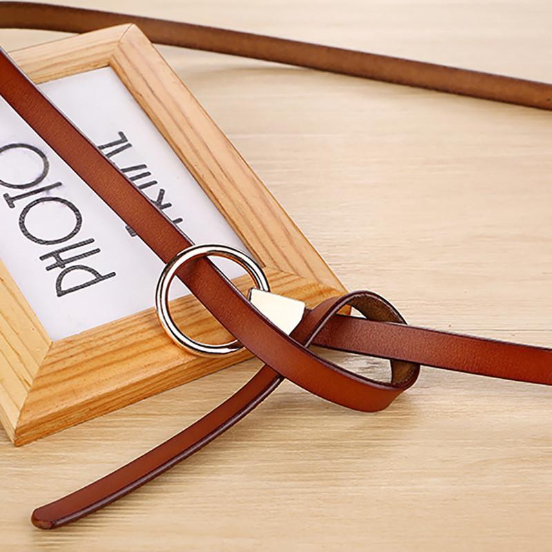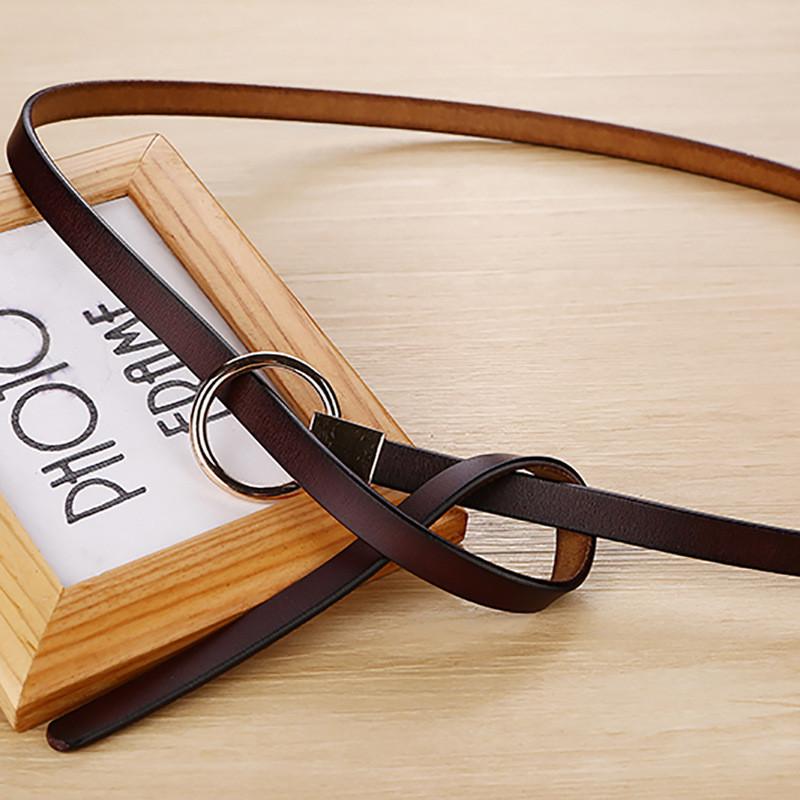 Этот стильный женский ремень изготовлен из натуральной двухслойной коровьей кожи и имеет небольшую ширину менее 2 см, создавая изящный силуэт.. Сплавная пряжка с поворотным замком повышает прочность и добавляет современный штрих.. Доступно в нескольких цветах и длинах от 105 см до 120 см, поддерживает индивидуальный выбор стиля. Подходящий для повседневных, офисных или модных нарядов, он дополняет различные ансамбли.. Для сохранения внешнего вида протирайте влажной тканью.