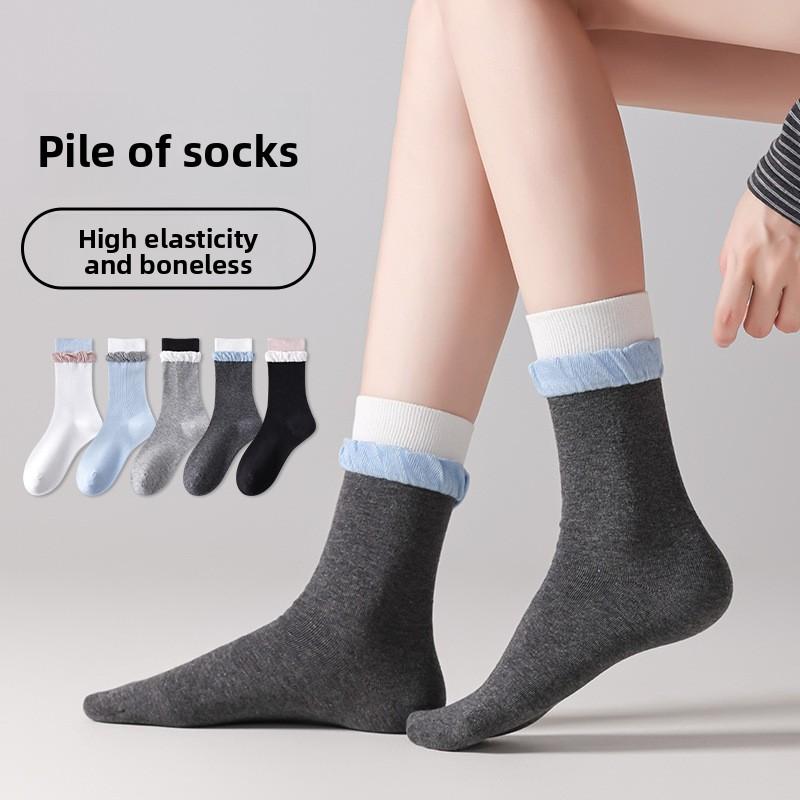 Женские хлопковые носки без косточек, махровые носки с кружевом, удобные и универсальные, влаговпитывающие белые носки, носки до середины икры