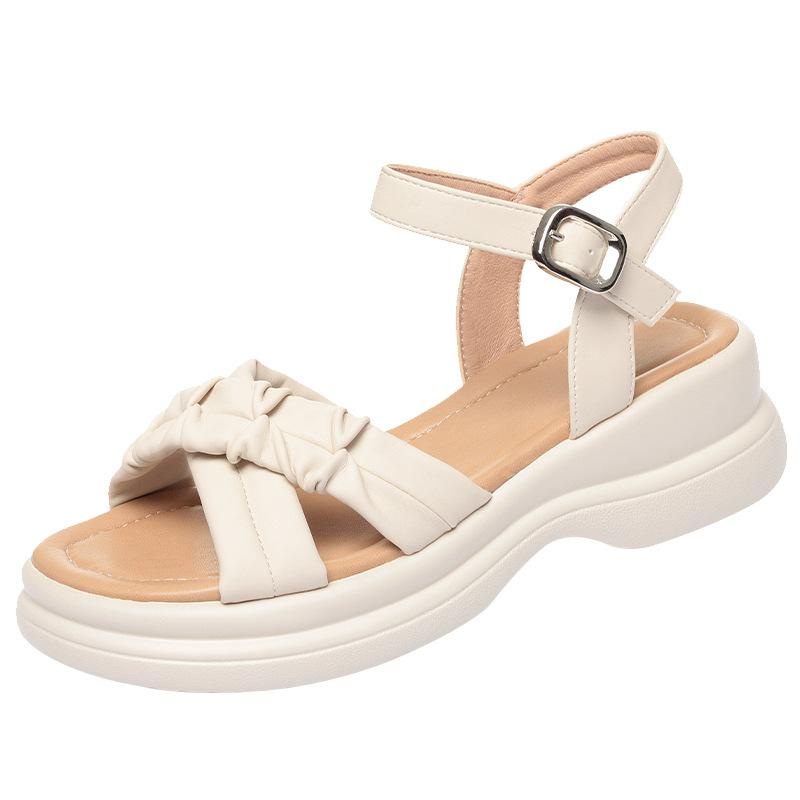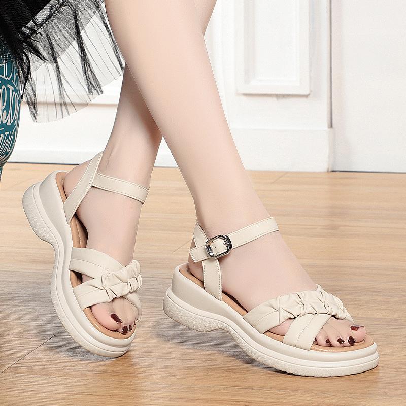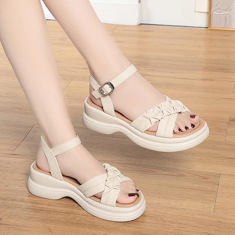 Модные туфли на танкетке для женщин, летние сандалии на платформе, толстая подошва, гладиаторы, повседневные, противоскользящие, дышащие, удобные, мягкие, кожаные, платье