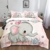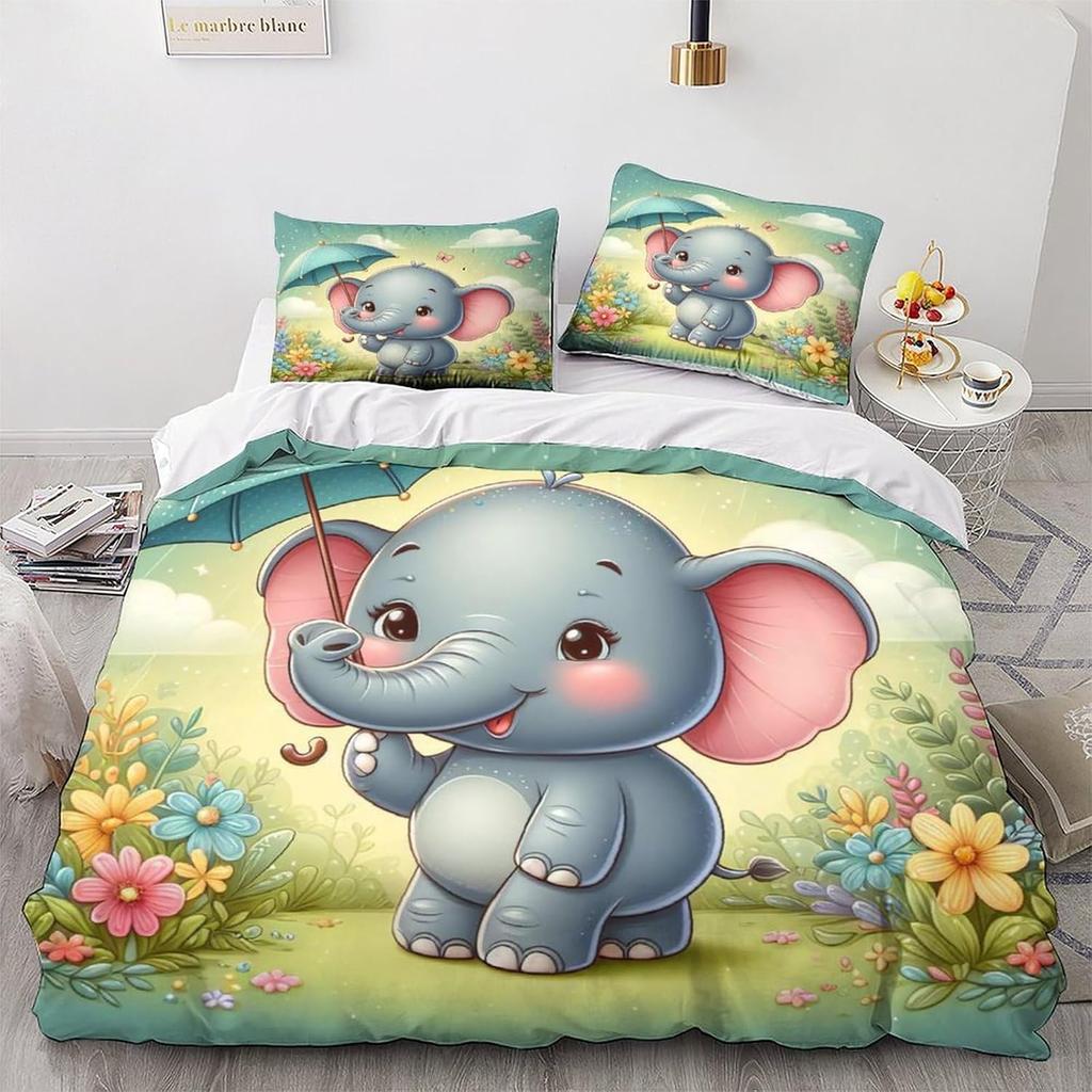 Kawaii Elephant Duvet Cover Set Cute Animals Quilt Cover Twin Queen Soft Microfiber Cartoon Bedding Set For Boys Girls Room Dorm