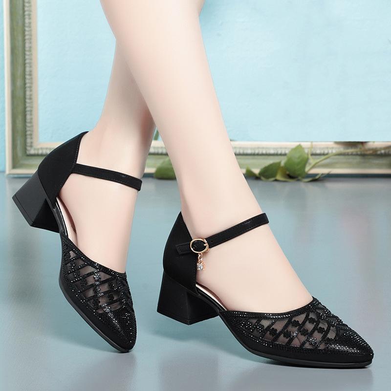 Мода Модные женские босоножки с пряжкой на ремешке, с острым носком, на квадратном каблуке, туфли-лодочки для офиса, сандалии из марли, удобные для офисных мам — купить товар онлайн с бесплатной доставкой по всему миру!