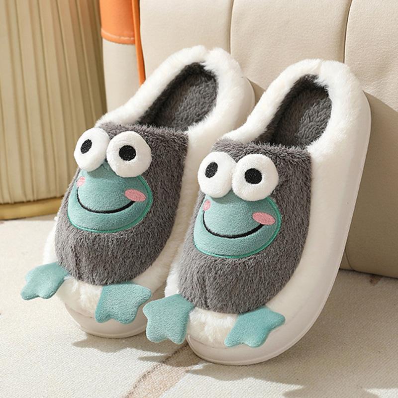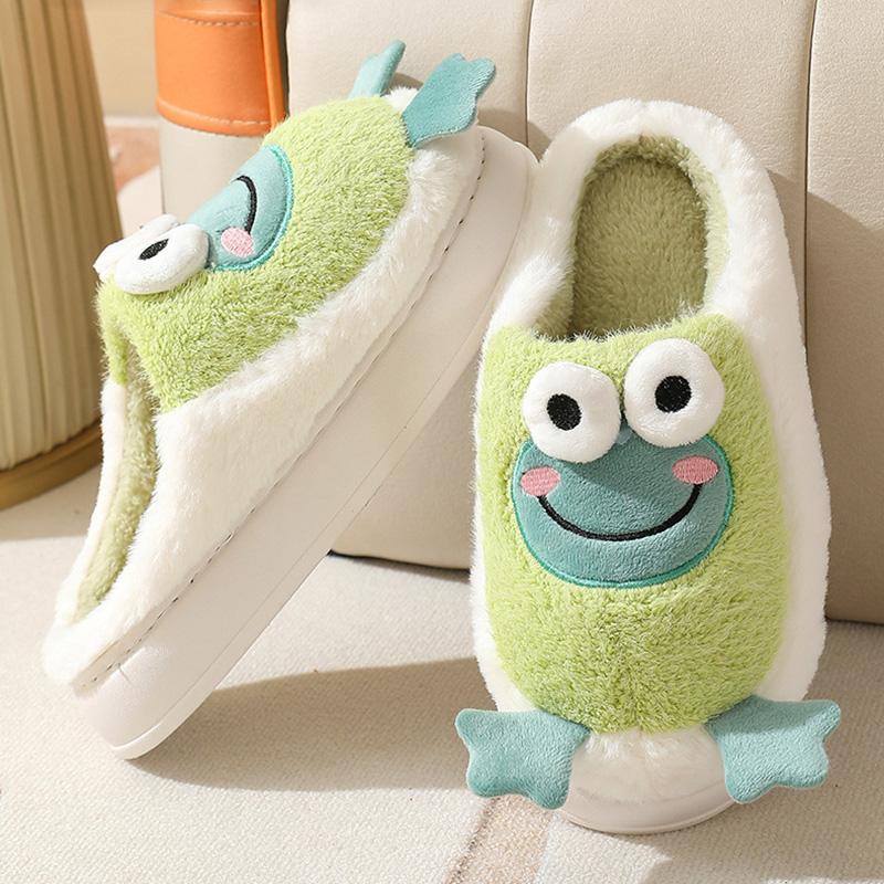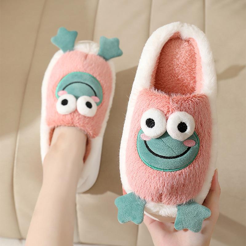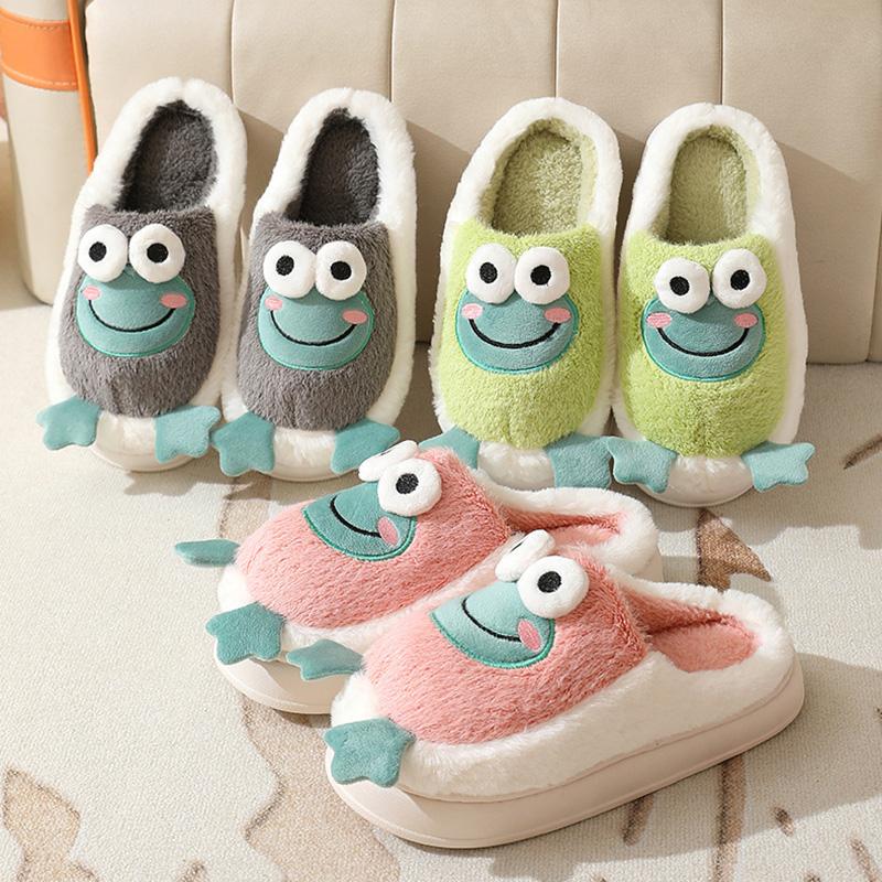 Модные новые зимние плюшевые тапочки с рисунком лягушки Kawaii, толстые домашние хлопковые туфли с рисунком из мультфильмов, женские домашние нескользящие пушистые меховые тапочки