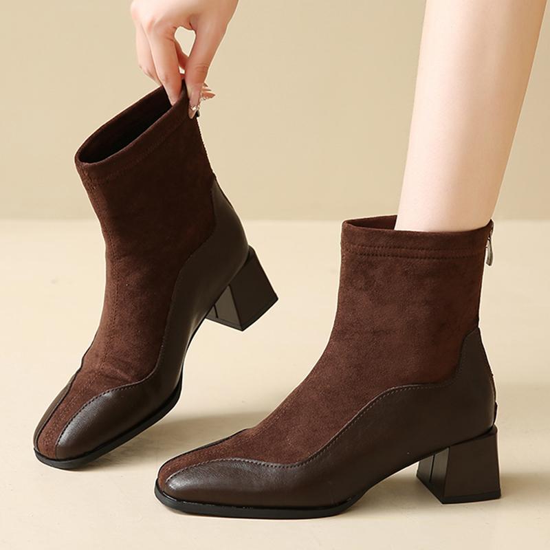 Модные женские ботильоны на толстом каблуке с квадратным носком, короткие сапоги в стиле пэчвок, женские однотонные ботильоны с застежкой-молнией сзади, тренд 2024 года