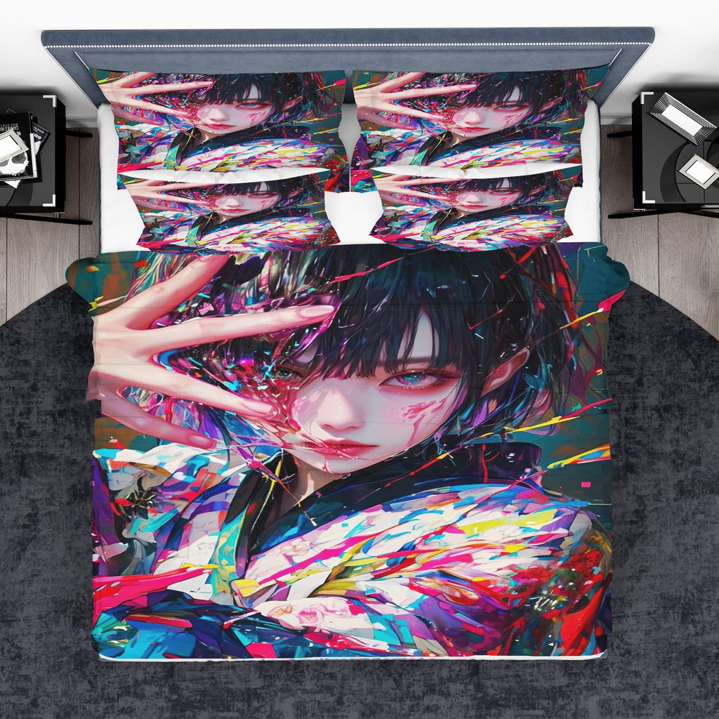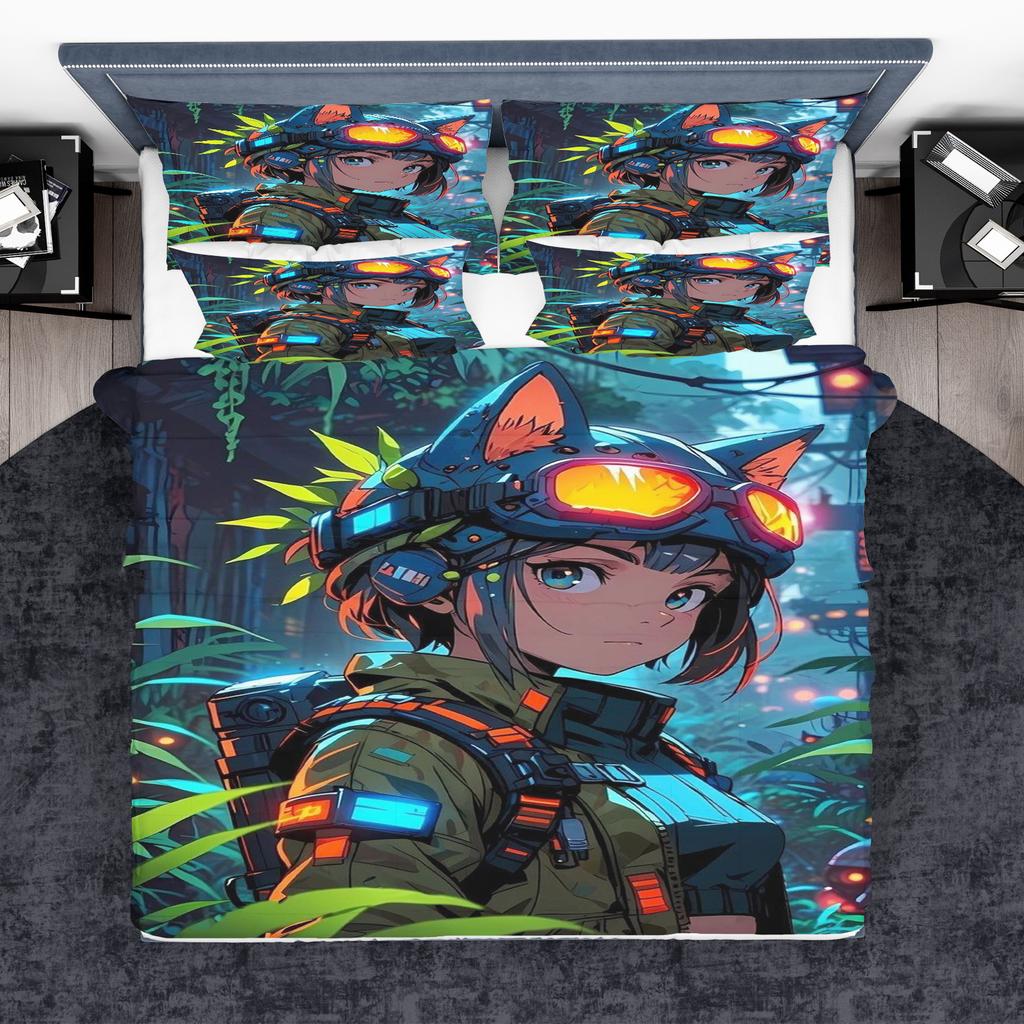 Красивая девушка пододеяльник мультяшный 3 предмета детский милый полиэстер мягкий дышащий одеяло анимация постельное белье