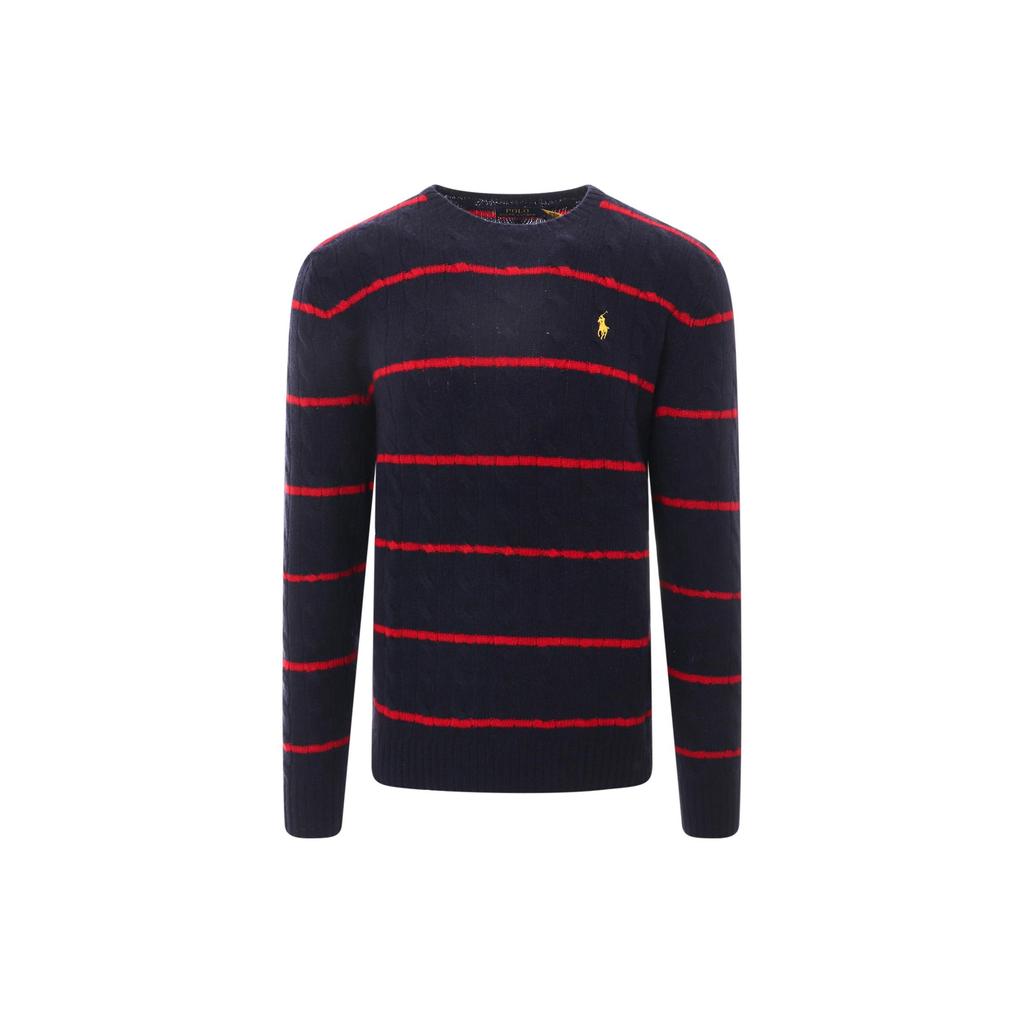 Polo Ralph Lauren FW23 Пуловер трикотажный с длинным рукавом и полосатым логотипом, мужской свитер, черный 710917407-001