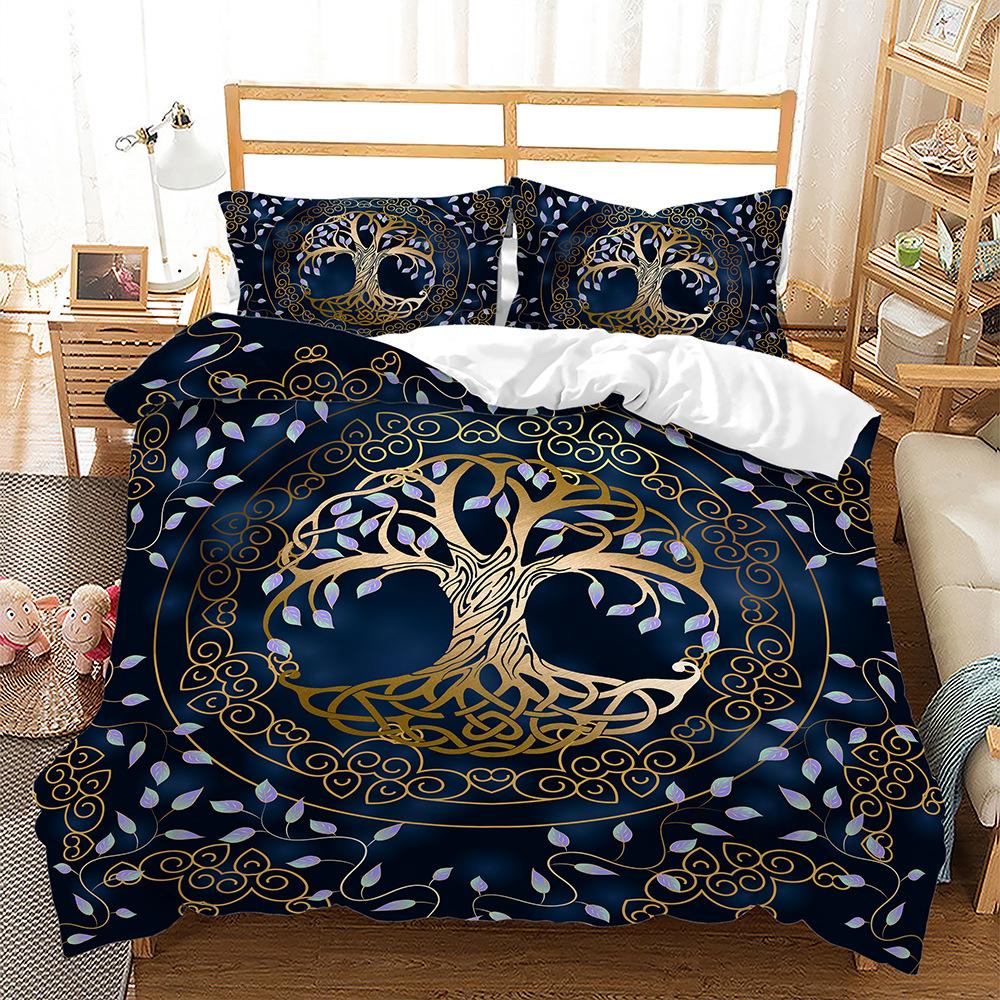 Tree Of Life Duvet Cover Set Blue Tree With Black Background 3D Print Comforter Cover For Kids Boys Girls Polyester Bedding Set