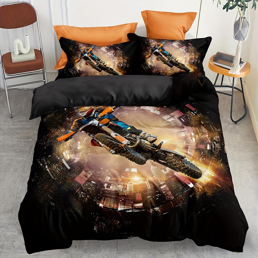 Cotton Fabric Motorcycle Duvet Cover Set Sports Competitive Print All Season Bedding Set Soft Breathable Duvet Cover