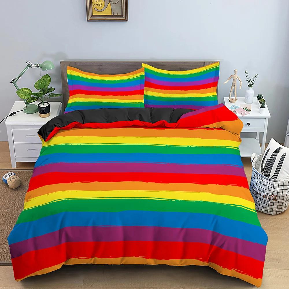 Rainbow Printing Bedding Set Colorful Stripe Duvet Cover Set Soft,Comfortable And Breathable King Queen Size Bedclothes Set 3Pcs