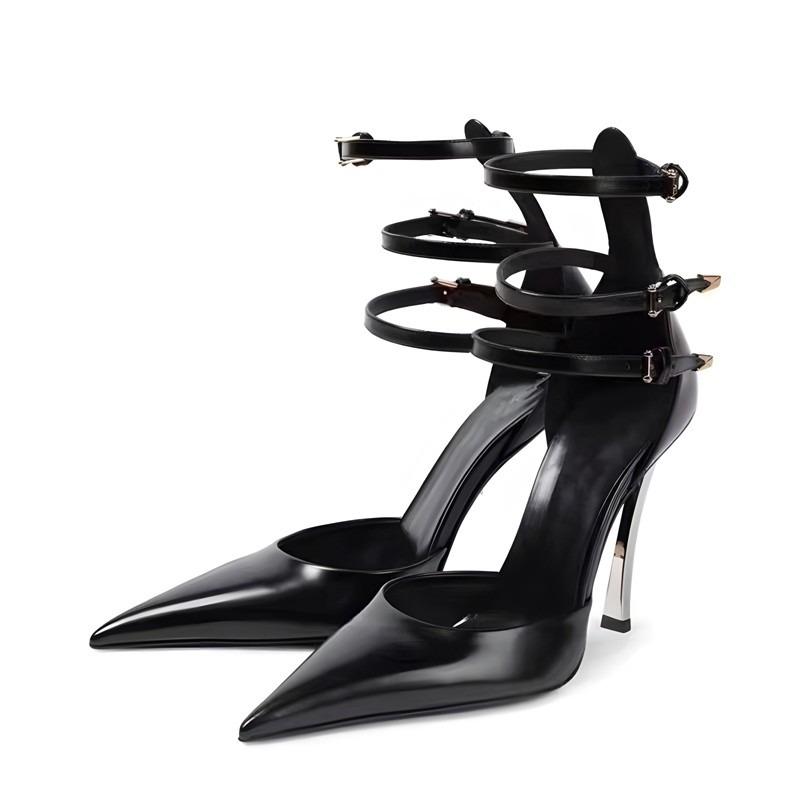 Модные туфли на высоком каблуке Весна Новые Остроносые С мелким вырезом Пустые Однословная пряжка Металлический каблук Черные Одиночные туфли