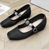 Модные новые летние балетки с квадратным носком, мелким вырезом, тканевые, с кристаллами, металлической пряжкой, мягкой подошвой и низким верхом — купить товар онлайн с бесплатной доставкой по всему миру!