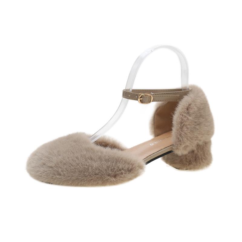 Модные роскошные сандалии из искусственного меха норки, женские элегантные белые пушистые туфли-лодочки с ремешком на щиколотке, женские вечерние туфли на высоком каблуке, плюшевые туфли для платья