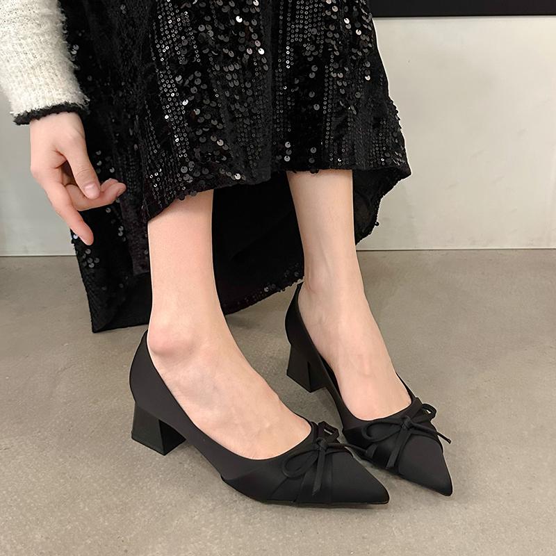 Мода 2025 Весна Новые Туфли на Толстом Каблуке Женская Мода Острый Носок Неглубокий Вырез Бант-Бабочка Слипоны Износостойкие Высокие Каблуки — купить товар онлайн с бесплатной доставкой по всему миру!