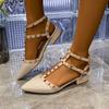 Модная элегантная обувь для женщин Новые сандалии женские с ремешком на пряжке и острым носком, с заклепками, для офиса и карьеры, летние, большого размера, сандалии с закрытым носком
