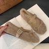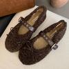 Мода Мода Меховая Обувь Ремешок с Пряжкой Женские Балетки с Обувью Зима Женские Неглубокие Балетки с Бантиком Леди Балетки Мэри Джейн Теплая Обувь