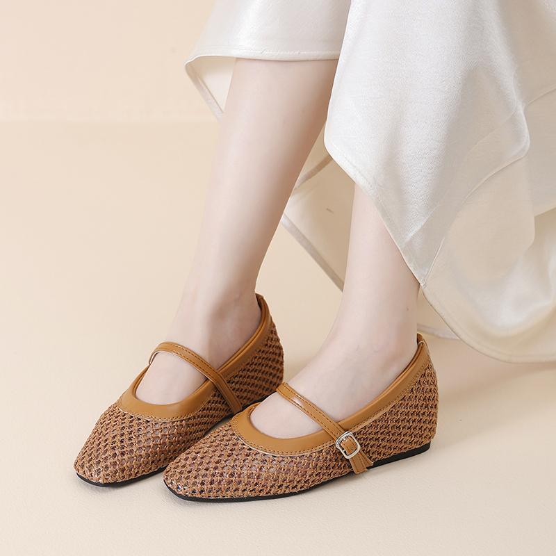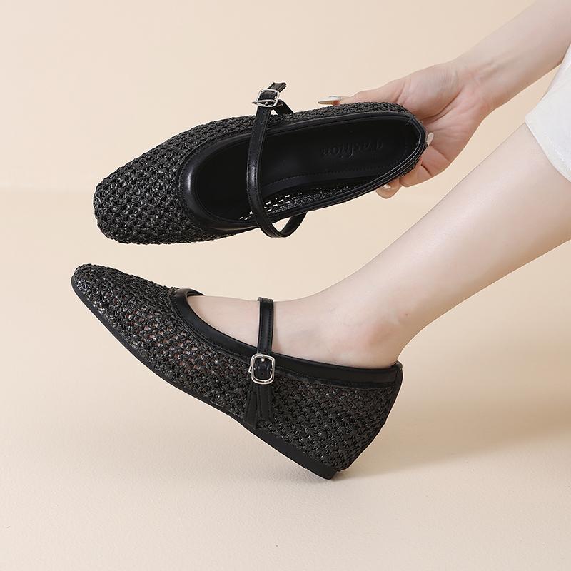 Мода 2025 Новые сетчатые балетки плетеной вязки Женский брендовый дизайн Туфли Мэри Джейн Женские летние повседневные туфли Удобные Нескользящие Женские