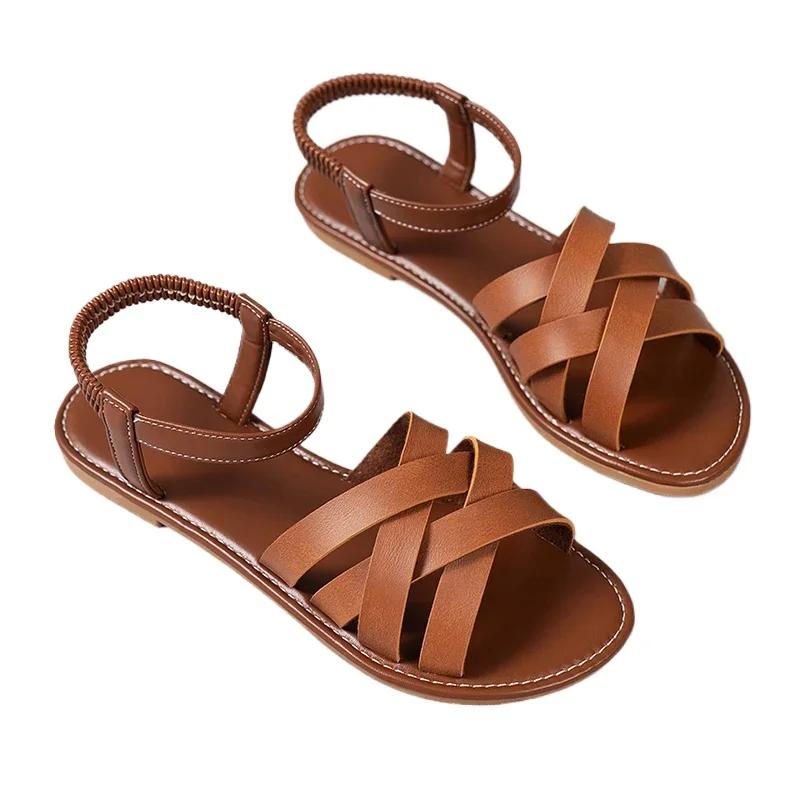 Модные новые женские сандалии с римскими ремешками на плоской подошве и нескользящей резиновой подошвой, модная женская обувь, летняя, удобная, размер плюс 43