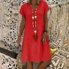 Women's Summer Loose Solid Color Short-sleeved V-neck A-line Dress — купить товар онлайн с бесплатной доставкой до всему миру!