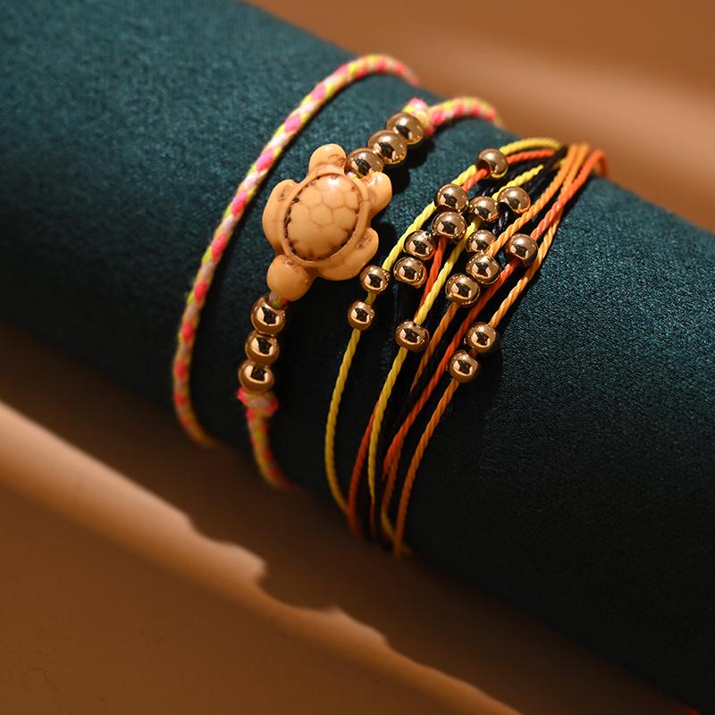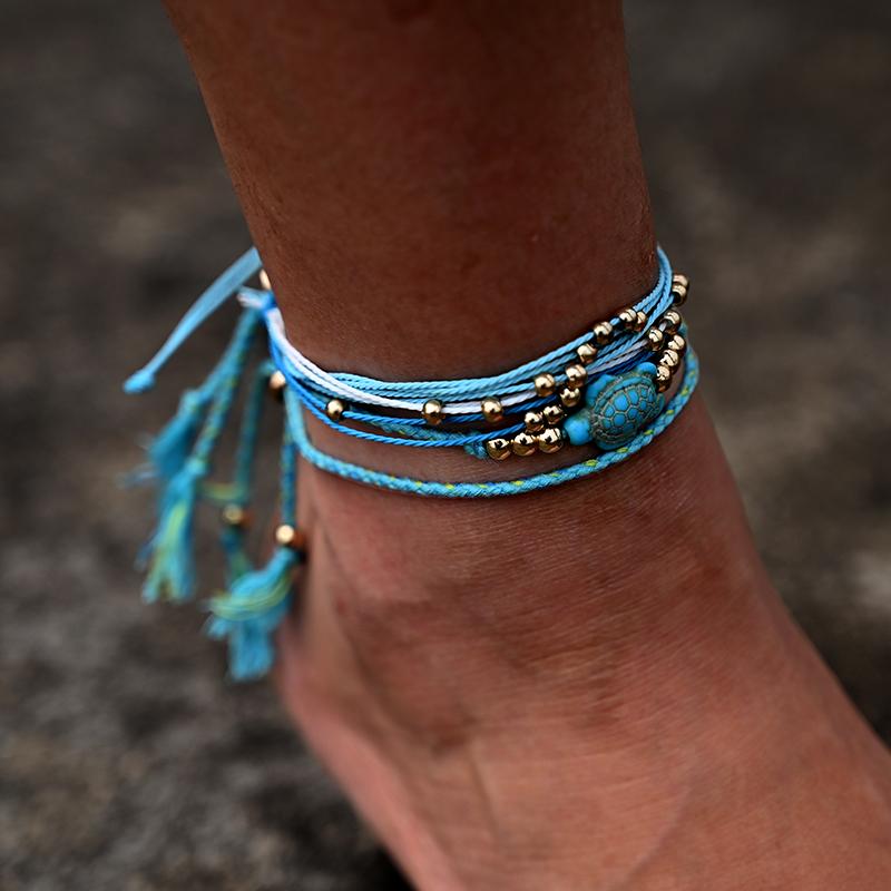 Богемский браслет-амулет с черепахой на ногу для женщин, шнуровка, Y2K, веревочный, модный, на ногу, на стопу, наборный, босиком, цепочка, летние пляжные украшения