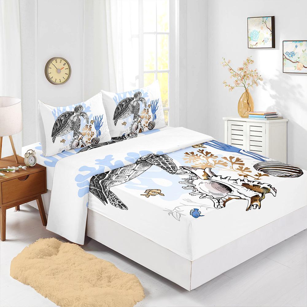 Four-Piece Mattress Digital Printing Mattress Protective Cover Bedding Turtle Animal