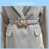 This women's leather dress belt features a polished finish and an adjustable fit, combining style with functionality. Crafted from genuine two-layer cowhide leather, it measures 105cm long with a slim width of less than 2cm, and includes a durable alloy pin buckle. Ideal for formal occasions or office wear, it adds a refined touch. Wipe clean with a damp cloth to maintain its sleek appearance.