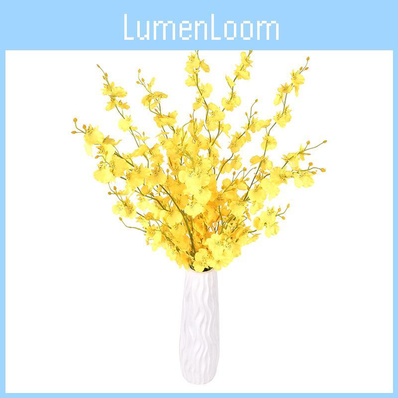 This artificial dancing orchid bouquet features silk flowers crafted with a pouring process, providing a realistic appearance.offers vibrant color options including white, pink, yellow, blue, purple, and red, suitable for various decor styles. Ideal for wedding decorations, home accents, outdoor events, or photography props, it enhances visual appeal. Wipe clean with a damp cloth to maintain its beauty.