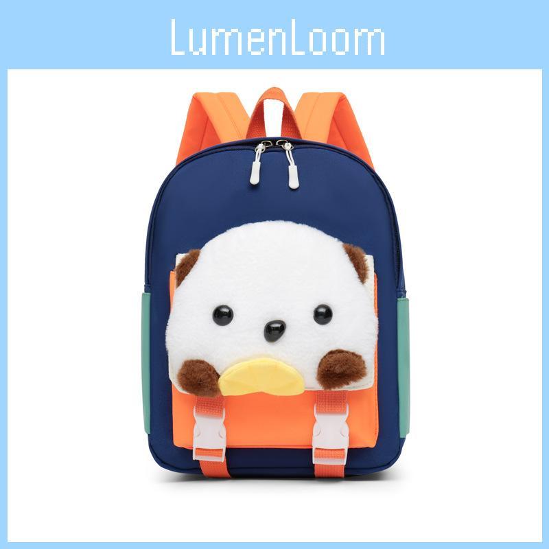 This lightweight children's backpack features a spacious main compartment measuring 31x25x11cm, designed to carry books and school supplies with ease. Made from durable nylon material, it offers enhanced wear resistance and includes a padded, air-cushion shoulder strap system to reduce shoulder strain during daily use. The backpack's playful animal motif, featuring a shell dog design, adds a charming touch suitable for young students.