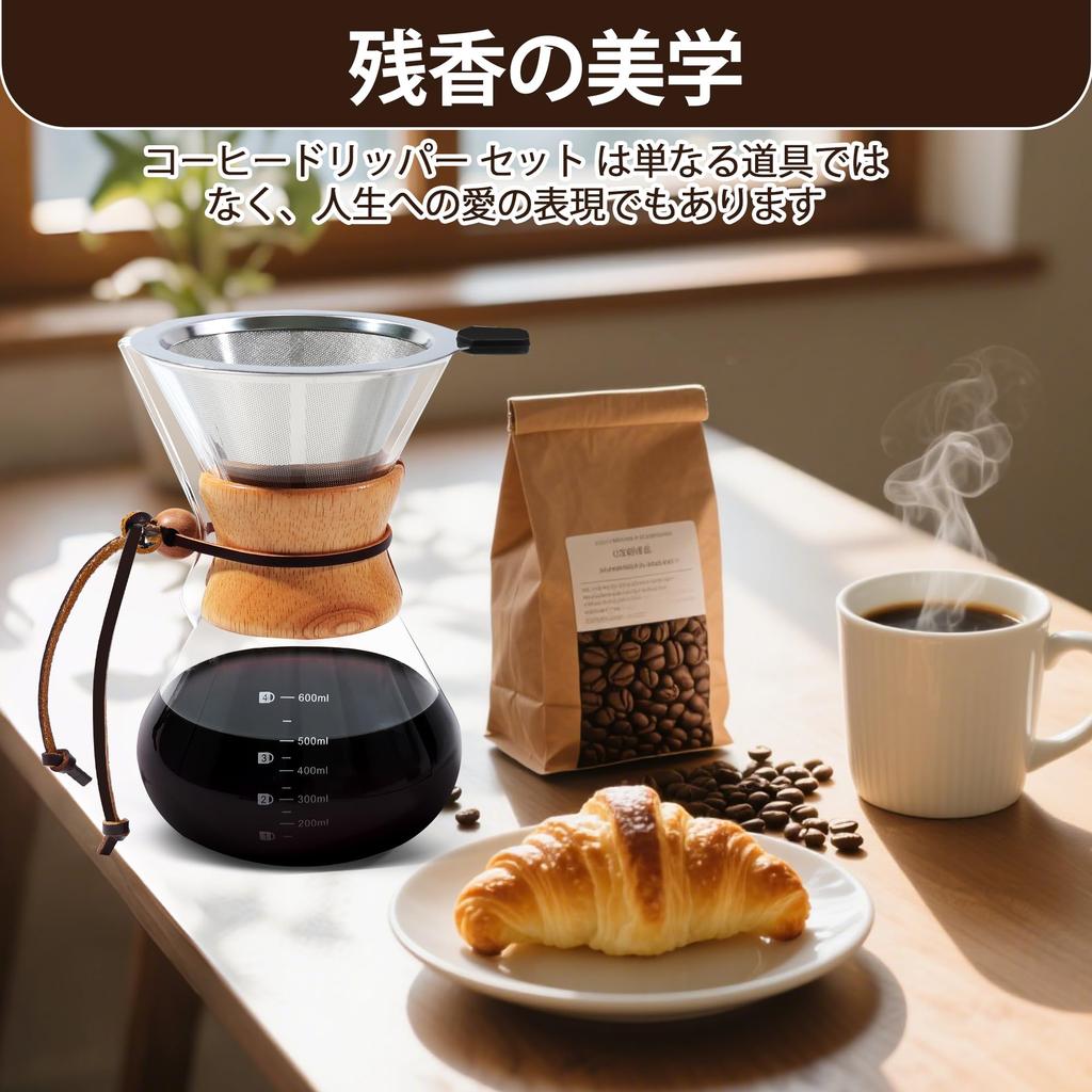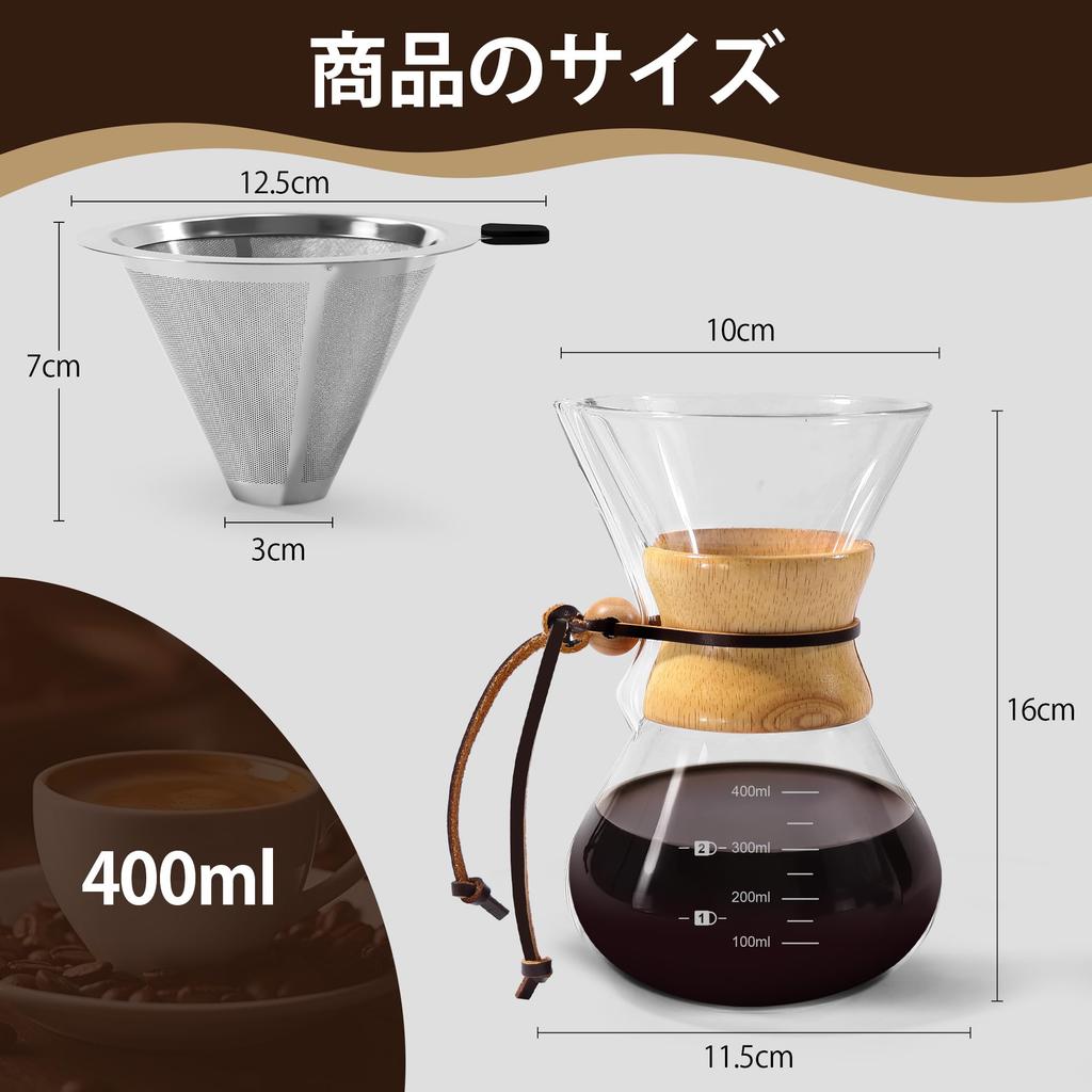 FGIUKC Сервер для капельного кофе, Жаростойкое стекло, Кофейная воронка, Фильтр из нержавеющей стали, Двухслойная сетка, Многоразовый, Подходит для микроволновой печи, Объем 400 мл,