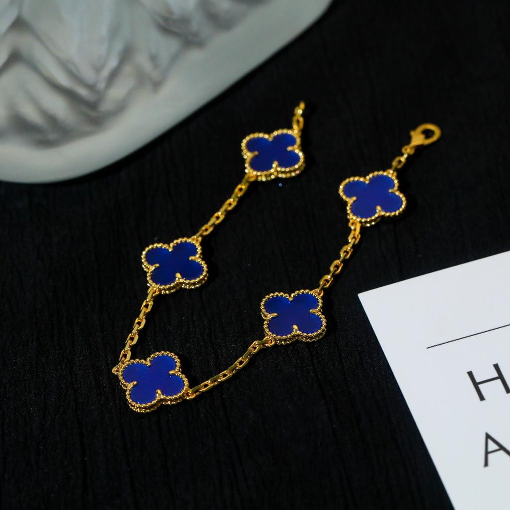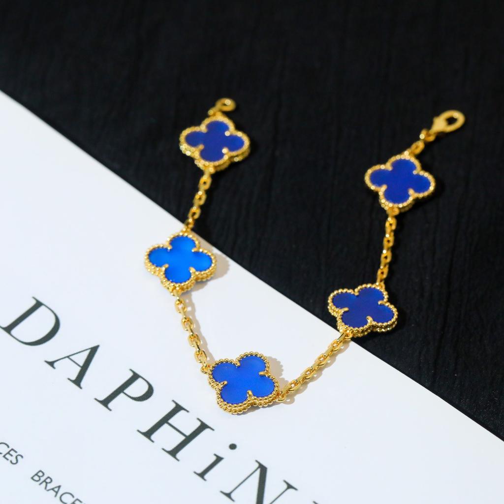 Браслет «Четырехлистный клевер», «Пятицветный голубой агат», версия Seiko, не выцветающий, легкая роскошь, натуральный агат, темпераментный, универсальный