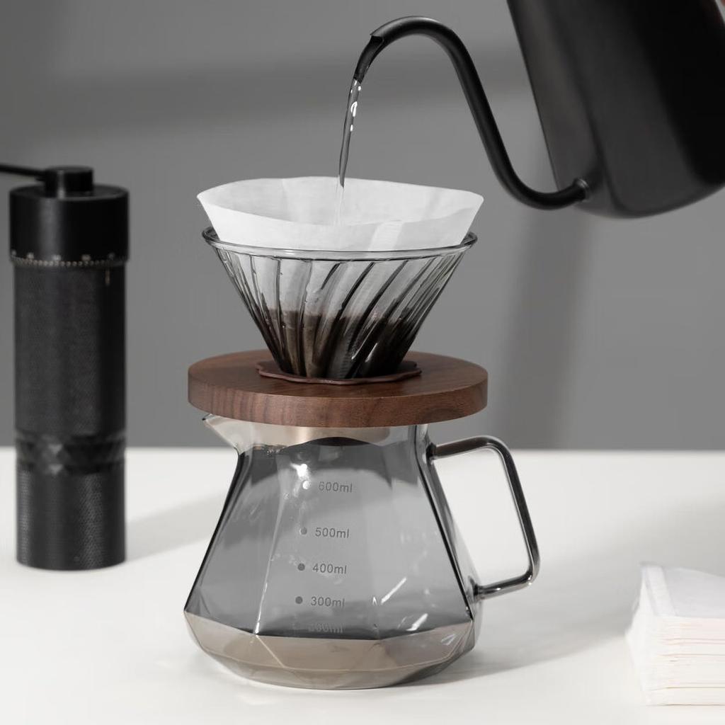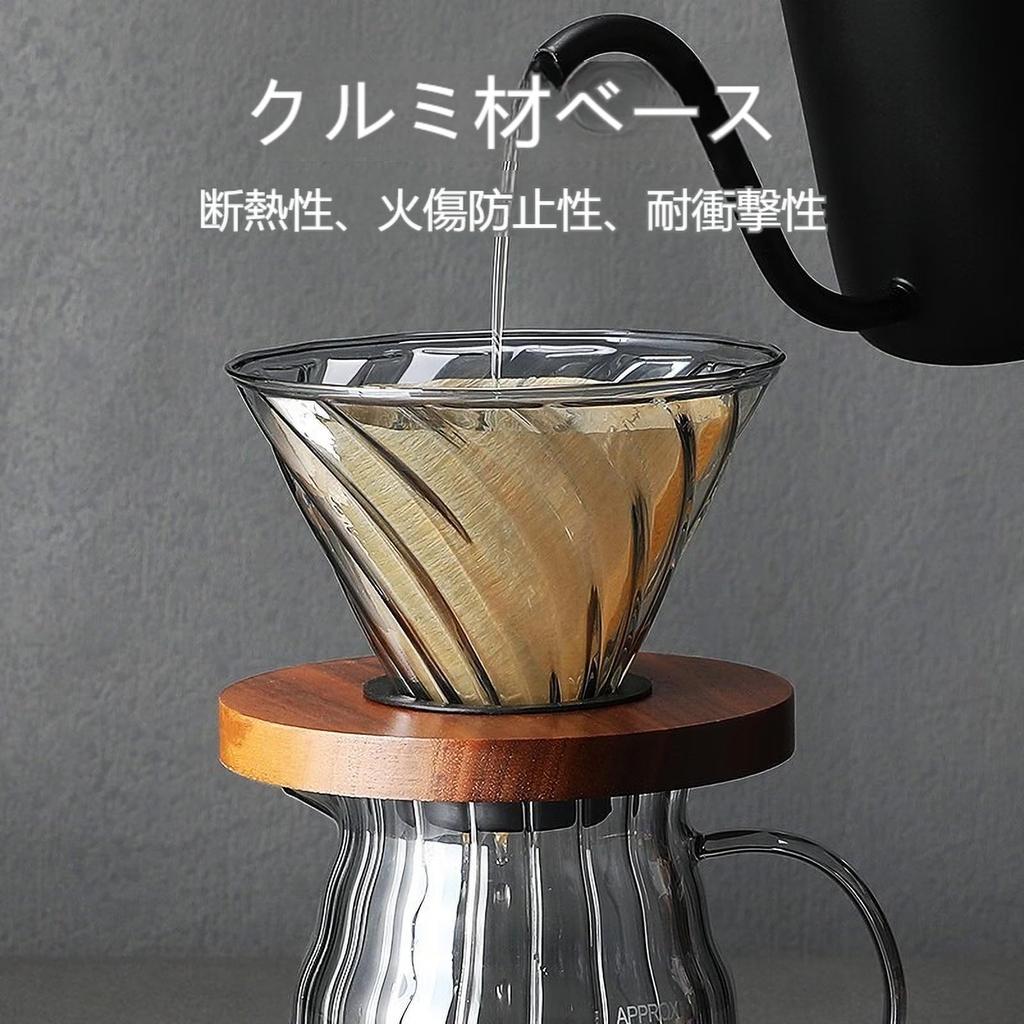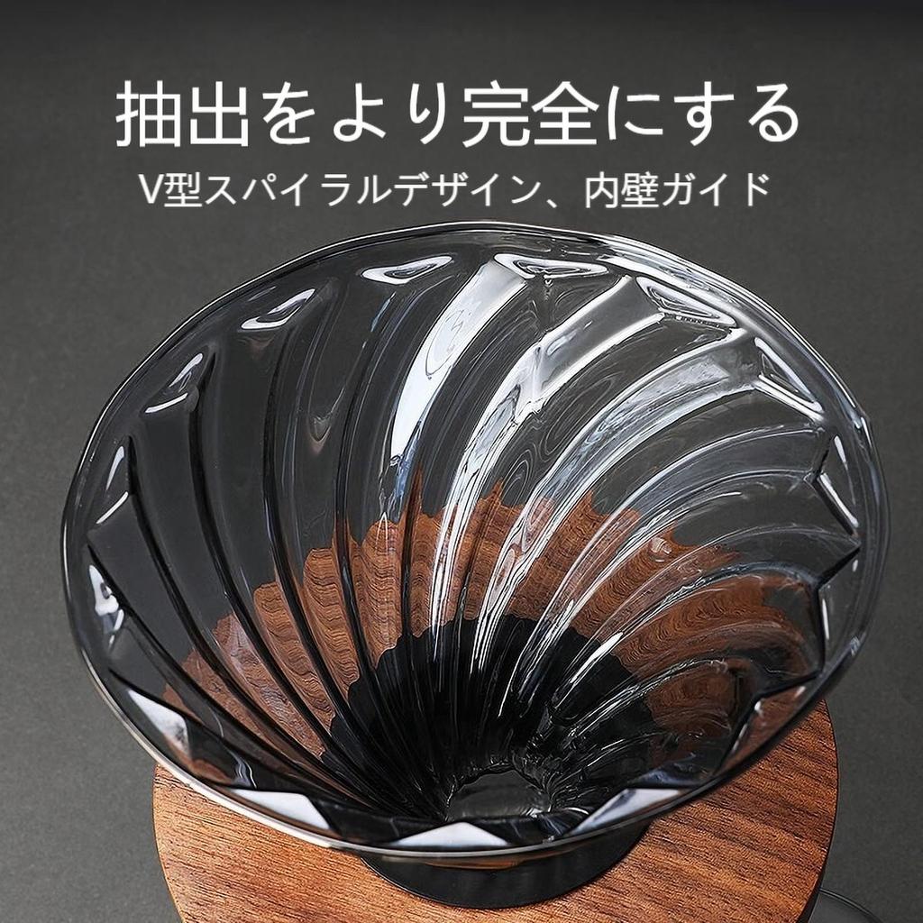ESTVLB V60 Coffee Dripper 02, Heat-Resistant Glass with Wooden Holder, Coffee Server for 2-4 People, Conical Coffee Drip, Coffee Filters, Coffee
