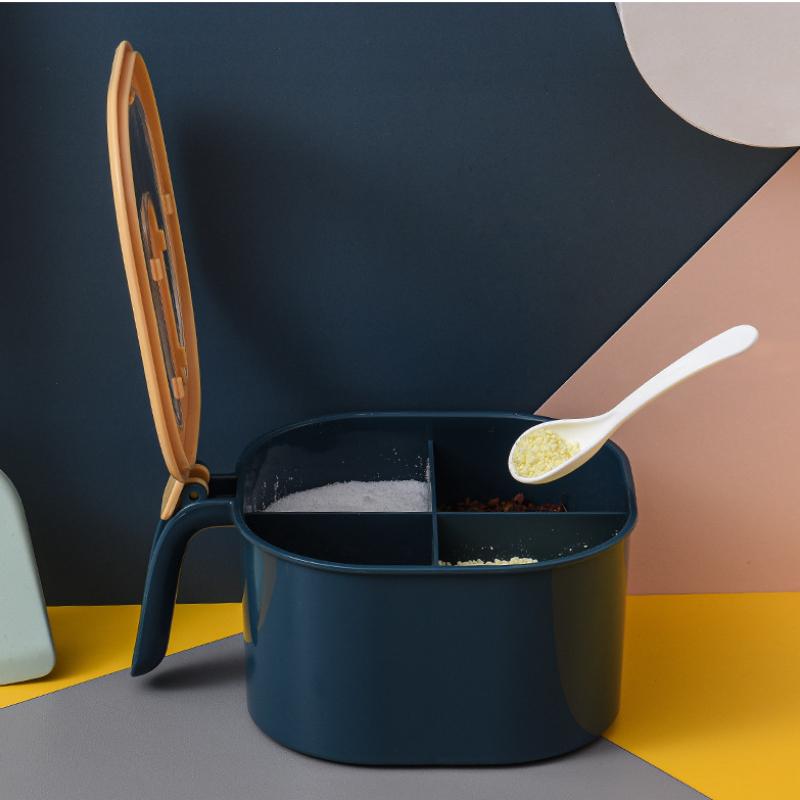 Набор емкостей для приправ Четырехсекционный Кухонные принадлежности Солонка и перечница Бытовое Многосекционное хранение с крышкой Диспенсер для приправ