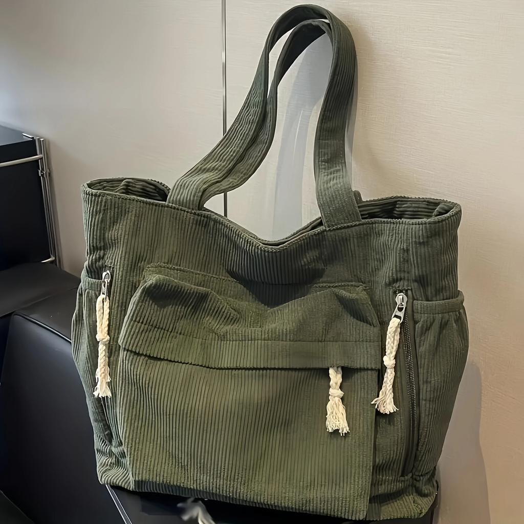 Винтажная вельветовая сумка | Многокарманная | Сумка через плечо | Повседневная и для путешествий | Бежевый