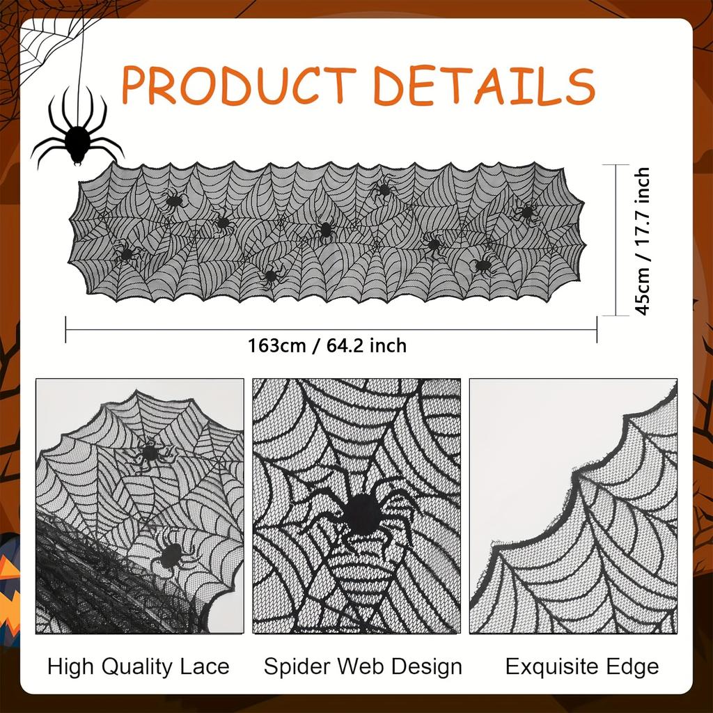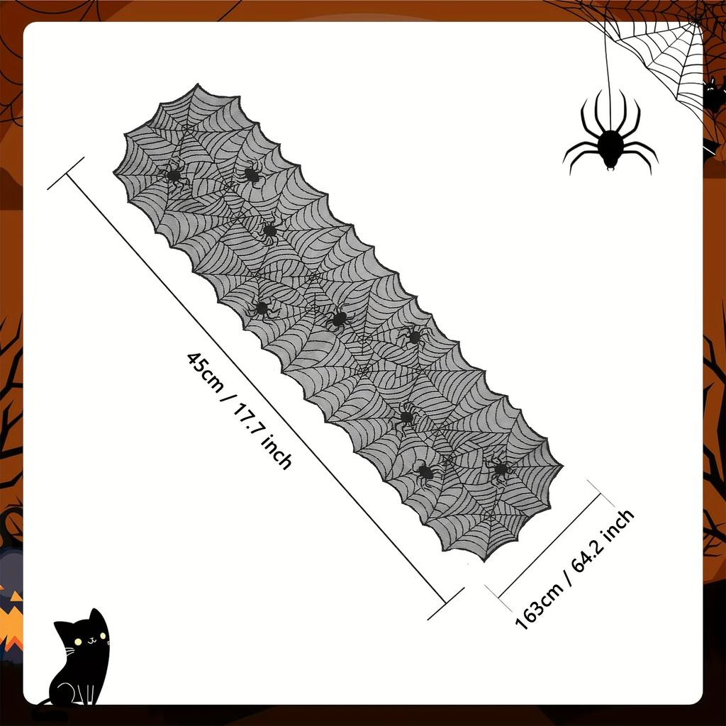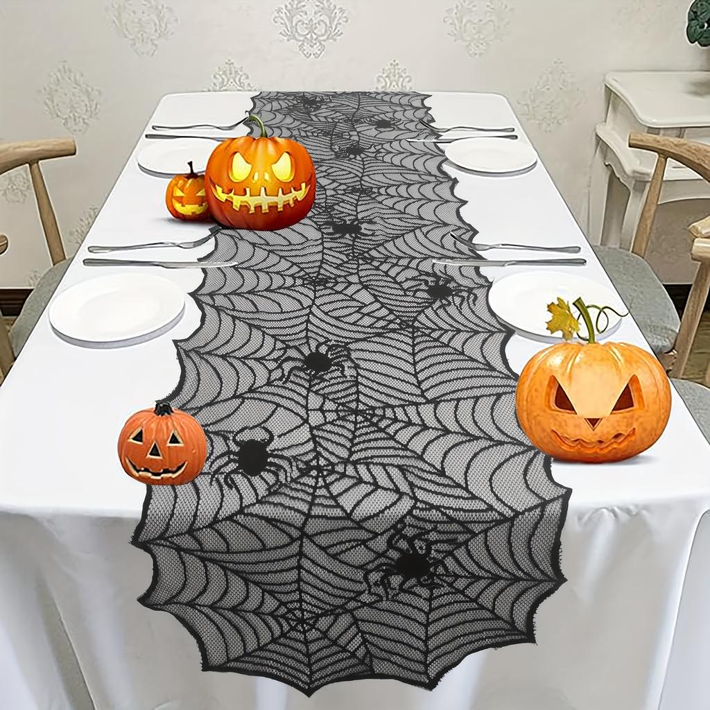 1 шт., Дорожка на стол, Черная кружевная дорожка на стол «Паутина», Полиэстер, Подарок для американской вечеринки на Хэллоуин, Домашний декор для столовой