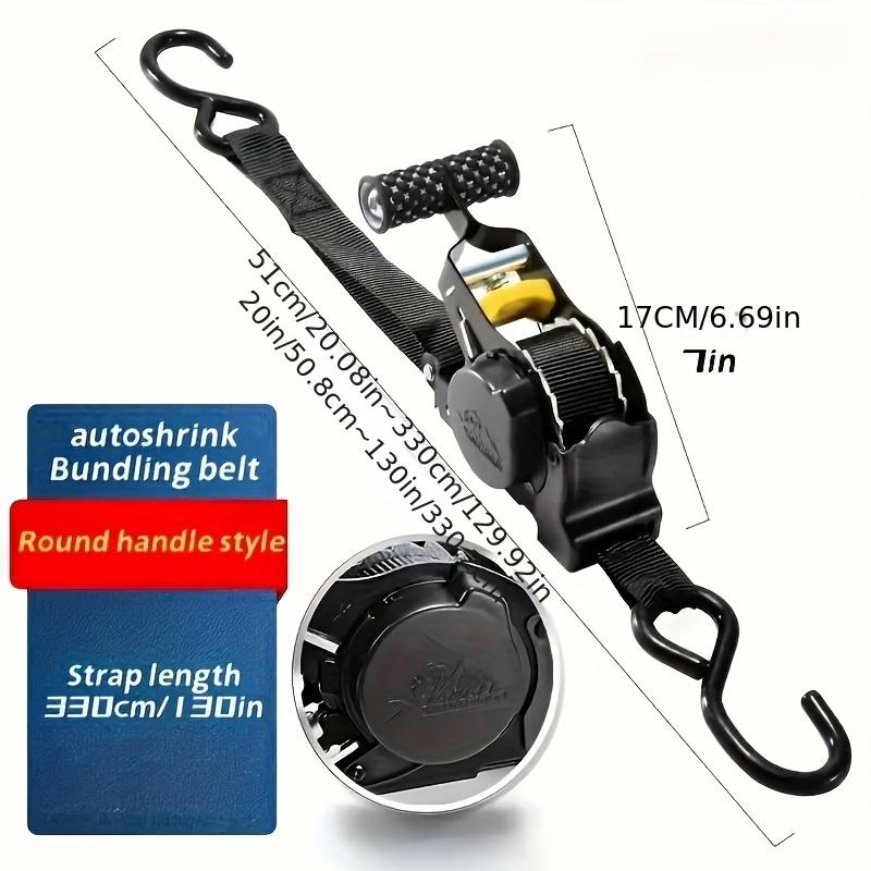 Heavy-duty aluminum cargo strap with automatic retraction, no assembly required, free extension and contraction