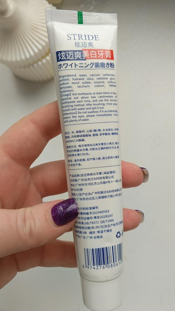 Зубная паста Stride. Она заметно отличается от привычных средств тем, что во время чистки она практически не пенится. Аромат мяты ощущается лишь в первые пару секунд, а затем практически исчезает. Текстура пасты однородная, гладкая, без зернистости, что обеспечивает мягкое и деликатное очищение. Состав основан на SiO2, который помогает эффективно полировать зубы и удалять пятна без излишней абразивности. В целом, мне кажется, это отличный выбор для бережного ухода за зубами с легкой свежестью и эффективным удалением налёта. На данный момент я использую пасту неделю и каких-то заметных изменений в оттенке эмали не заметила. Буду следить дальше, пните в марте и я дам обновлённую инфу. ⭐ Продавец упаковал товар в почтовый конверт с пупыркой внутри. ⭐ Трек номер отслеживался до почтового отделения. ⭐ В приложении пришло уведомление о готовности к выдаче заказа. ⭐ Доставка в Петербург заняла 22 дня.