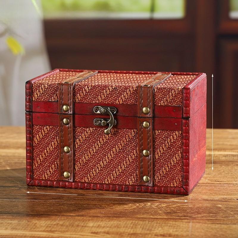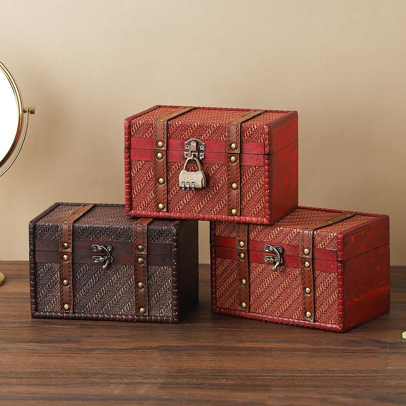 Wooden Retro Woven Lockable Medicine Box Organizer With Password For Home Office