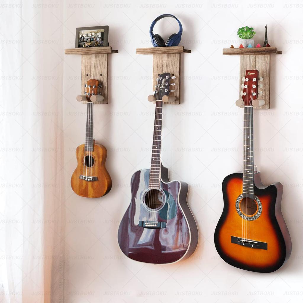 Истинная ценность этого гитарного держателя в том, что он позволяет хранить вашу гитару и предметы повседневного обихода в одном месте.. Полка, расположенная прямо над вашей висящей гитарой или укулеле, идеально подходит для хранения вещей, которые могут понадобиться вам после игры.. Вы можете быстро хранить свой тюнер, каподастр или медиаторы прямо там, избегая хлопот с их поиском в следующий раз, когда они вам понадобятся.. Этот поднос также очень полезен в повседневной жизни. Его можно использовать как определенное место для необходимых вещей, которые обычно скапливаются, например, пультов и очков в гостиной или ключей и монет в прихожей.. Тепло и функциональность дерева помогают поддерживать пространство вашего инструмента свободным от беспорядка.