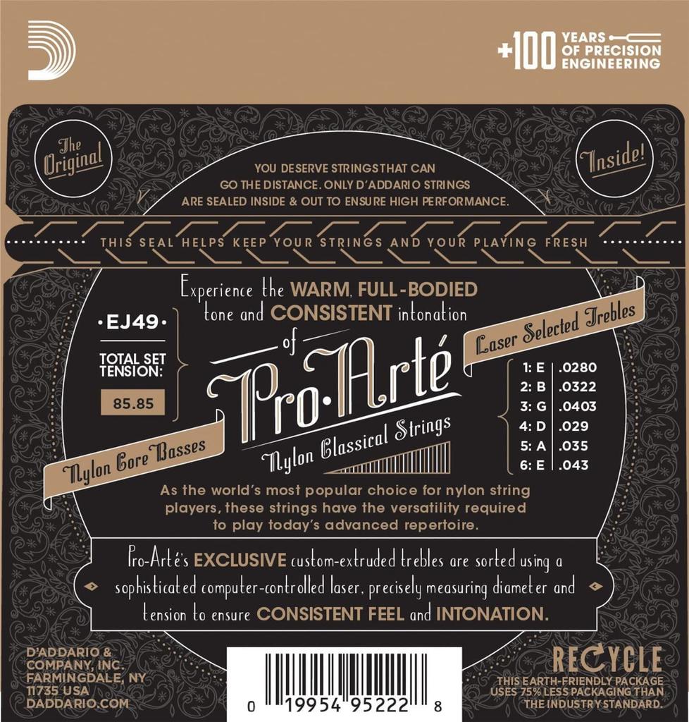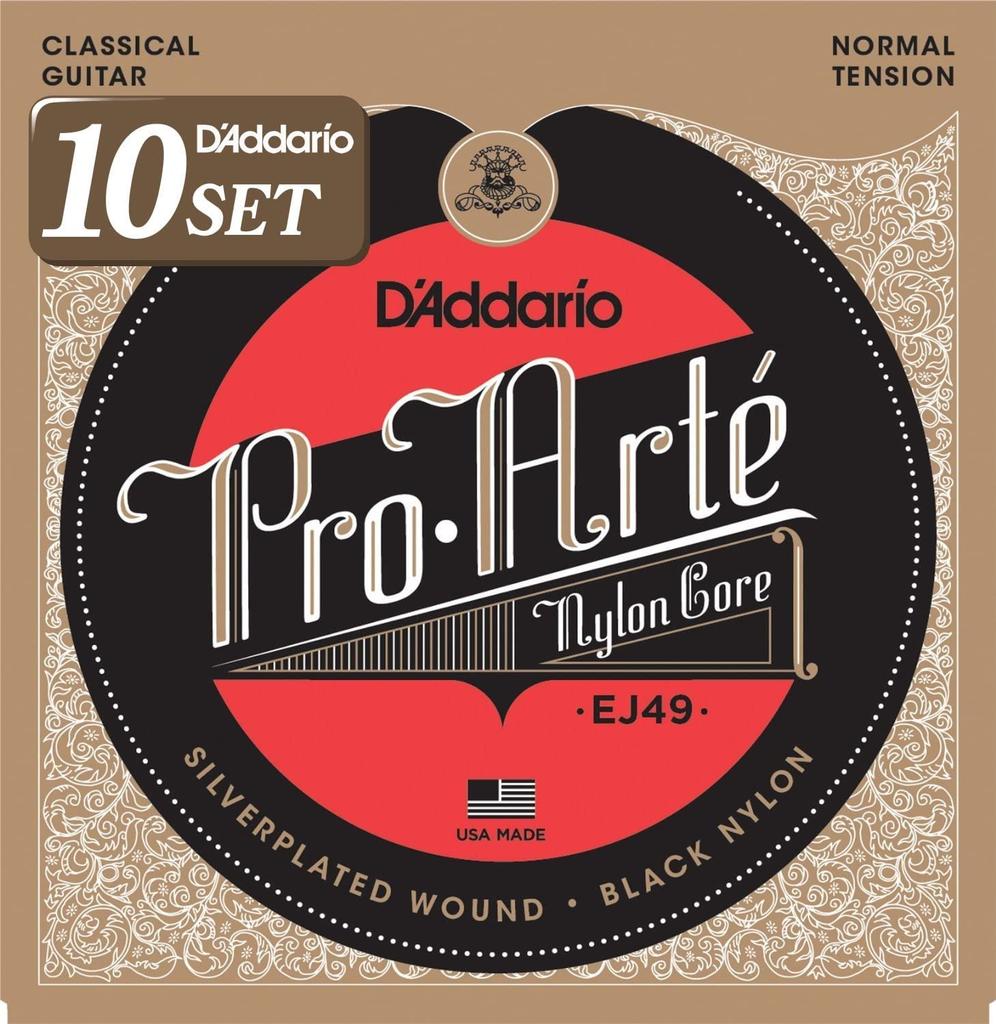 ProArte Classical Guitar D'Addario Strings, Silver/Black, Normal, EJ49, 10-Pack