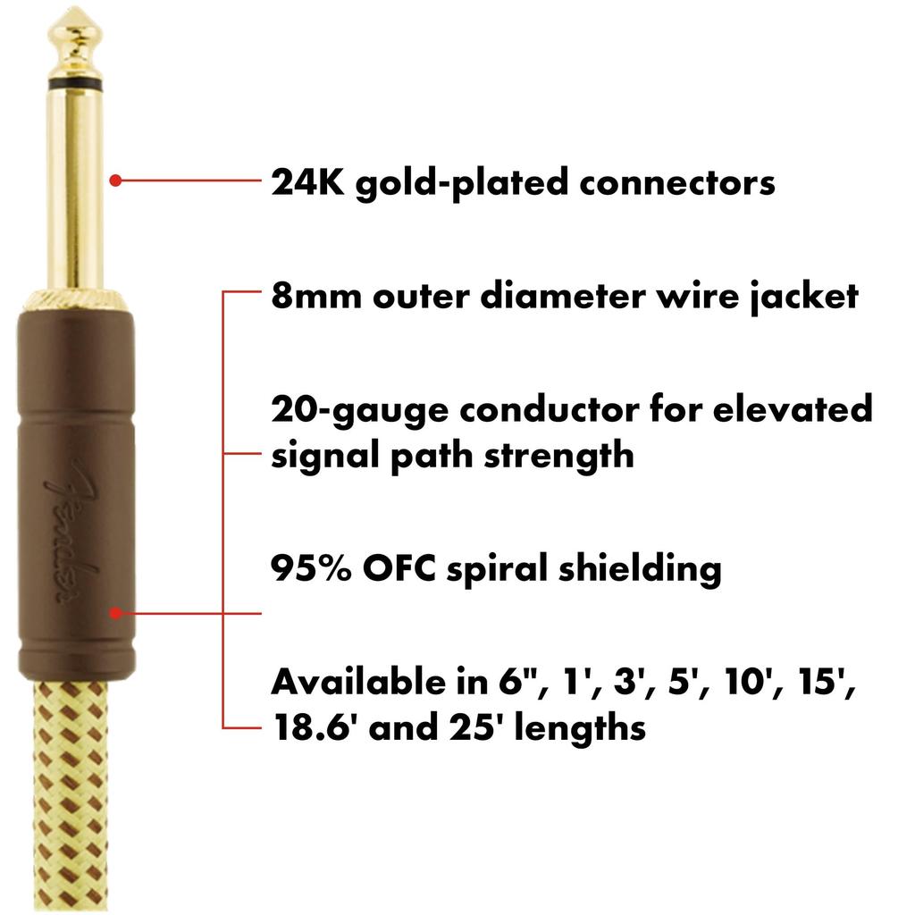 Кабель Fender Deluxe Series Instrument Tweed 08, Прямой/Угловой, 10',