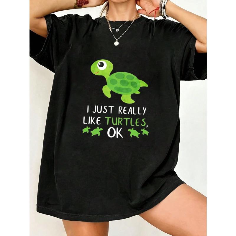 Милая футболка с принтом черепахи черная Я просто очень люблю черепах Ок Графическая футболка для женщин Повседневный летний наряд Пляжная одежда
