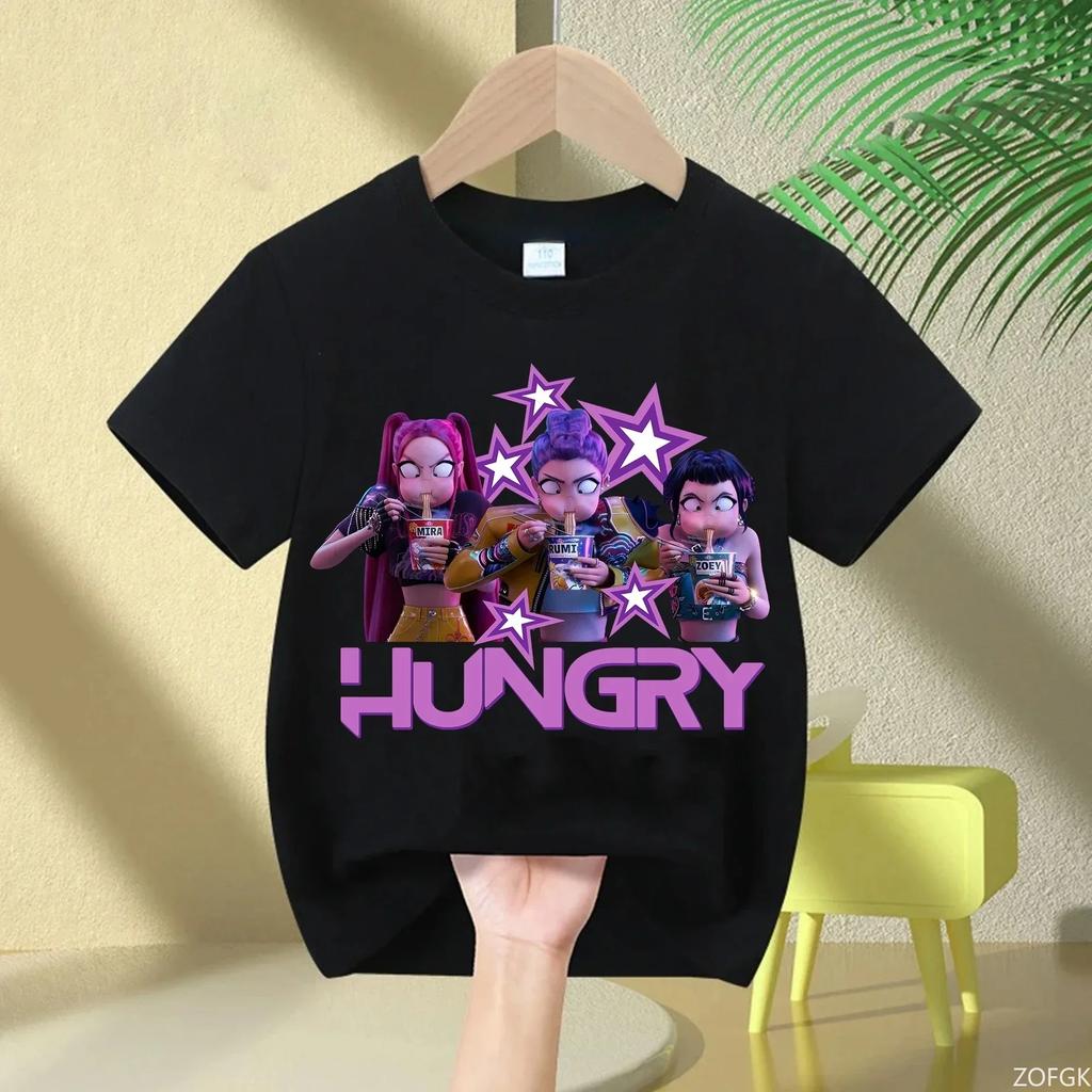Летняя футболка для девочек с горячим фильмом KPop Охотники на демонов Подарки для фанатов Детская мода Повседневная Удобная Мягкая Хлопковая футболка