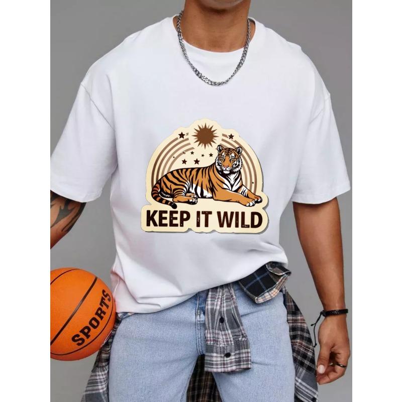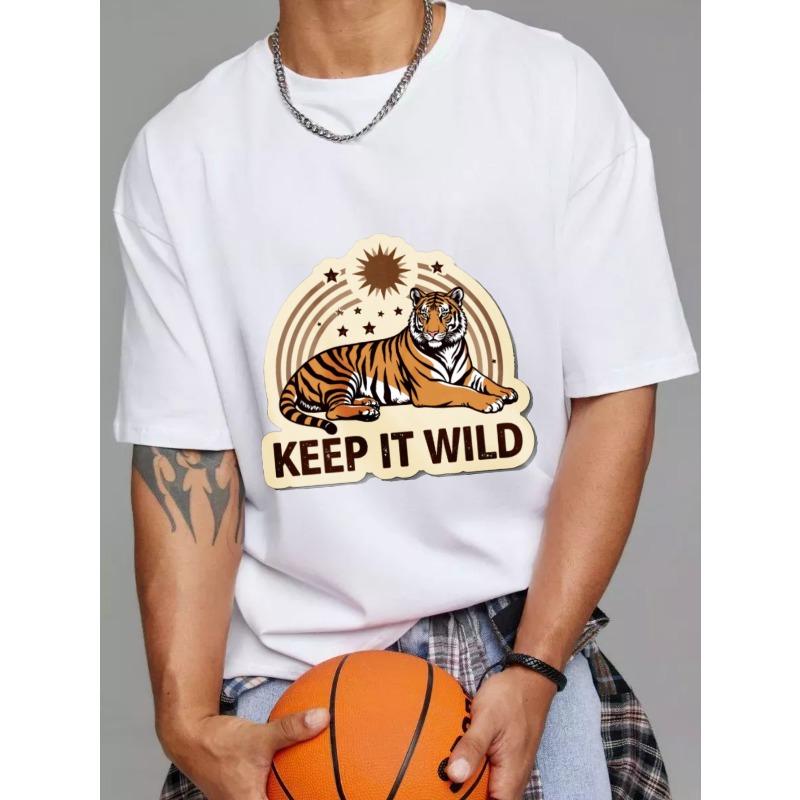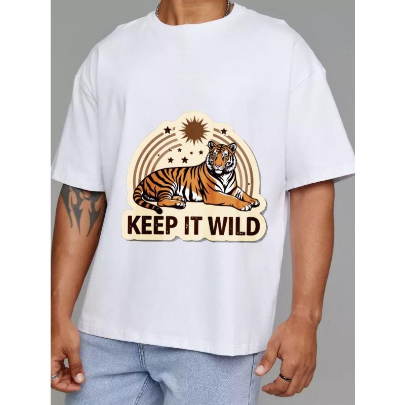 Хлопковая футболка Белый тигр и звезды Keep It Wild принт Повседневная одежда для мужчин и женщин Стиль для приключений на открытом воздухе