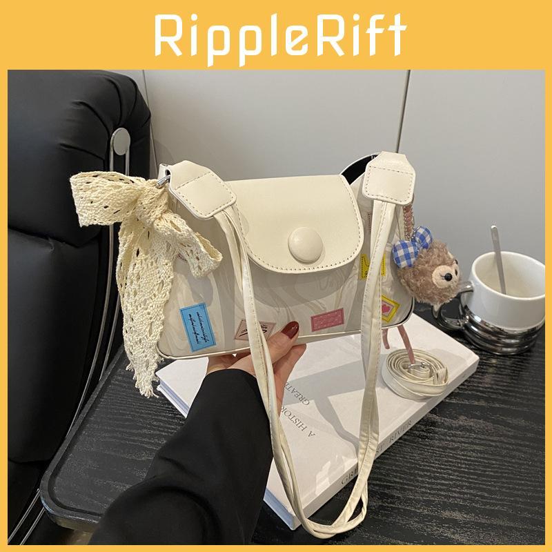 Minimalist Pu Crossbody Bag With Lace Bow And Doll Pendant For Urban Fashion