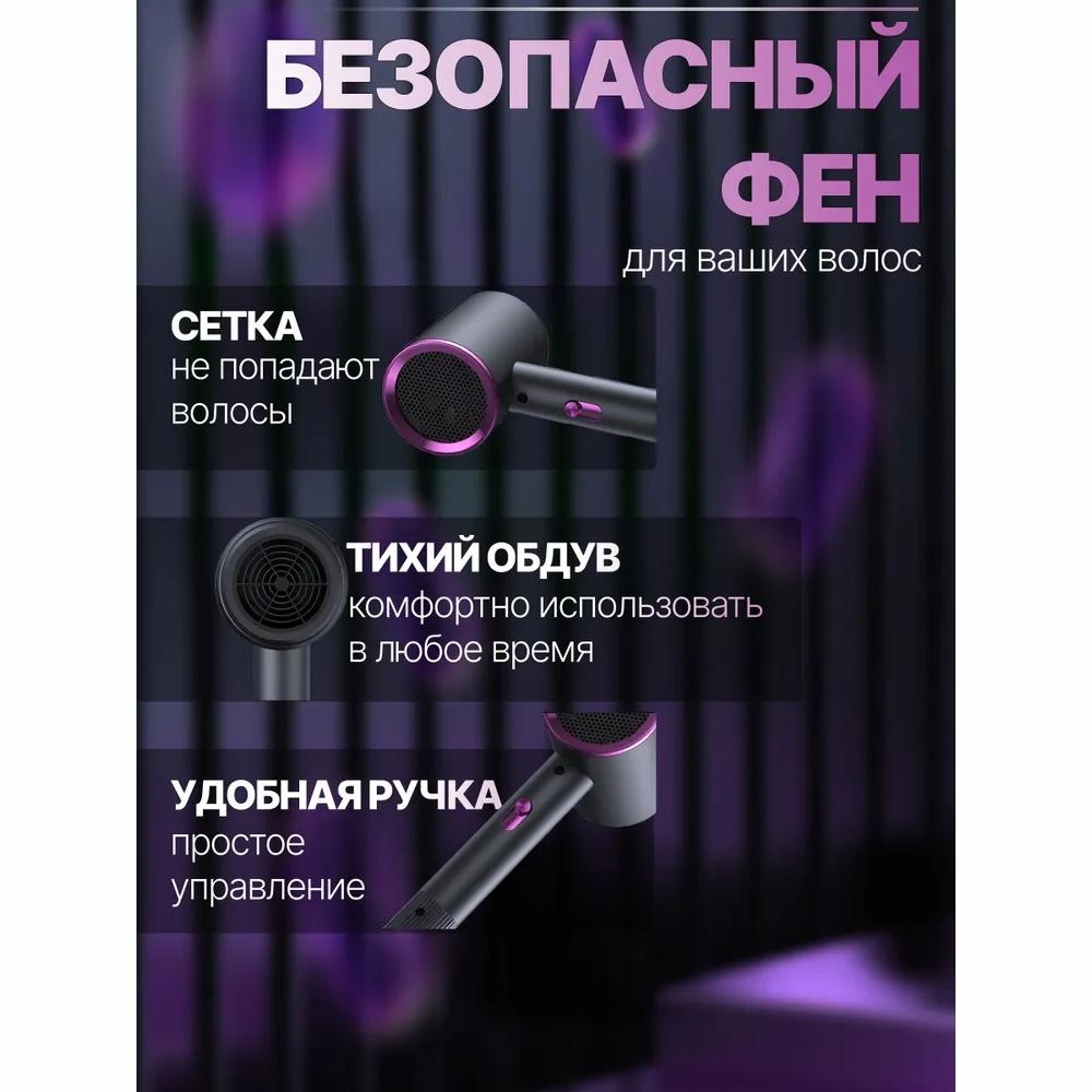 Фен Фен с эффектом ионизации 2000 Вт, 2 скорости, количество насадок 1, розовый, серый металлик